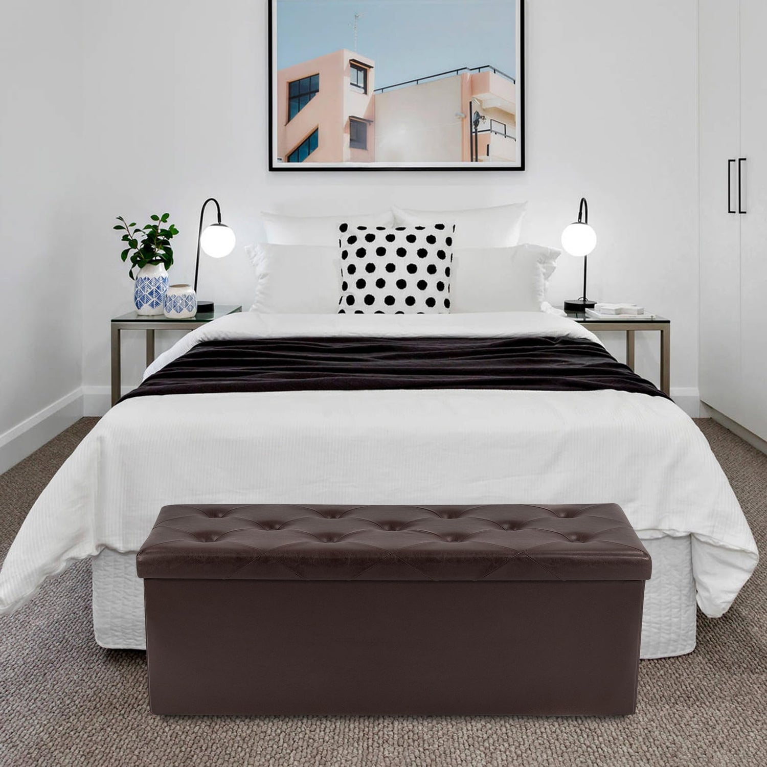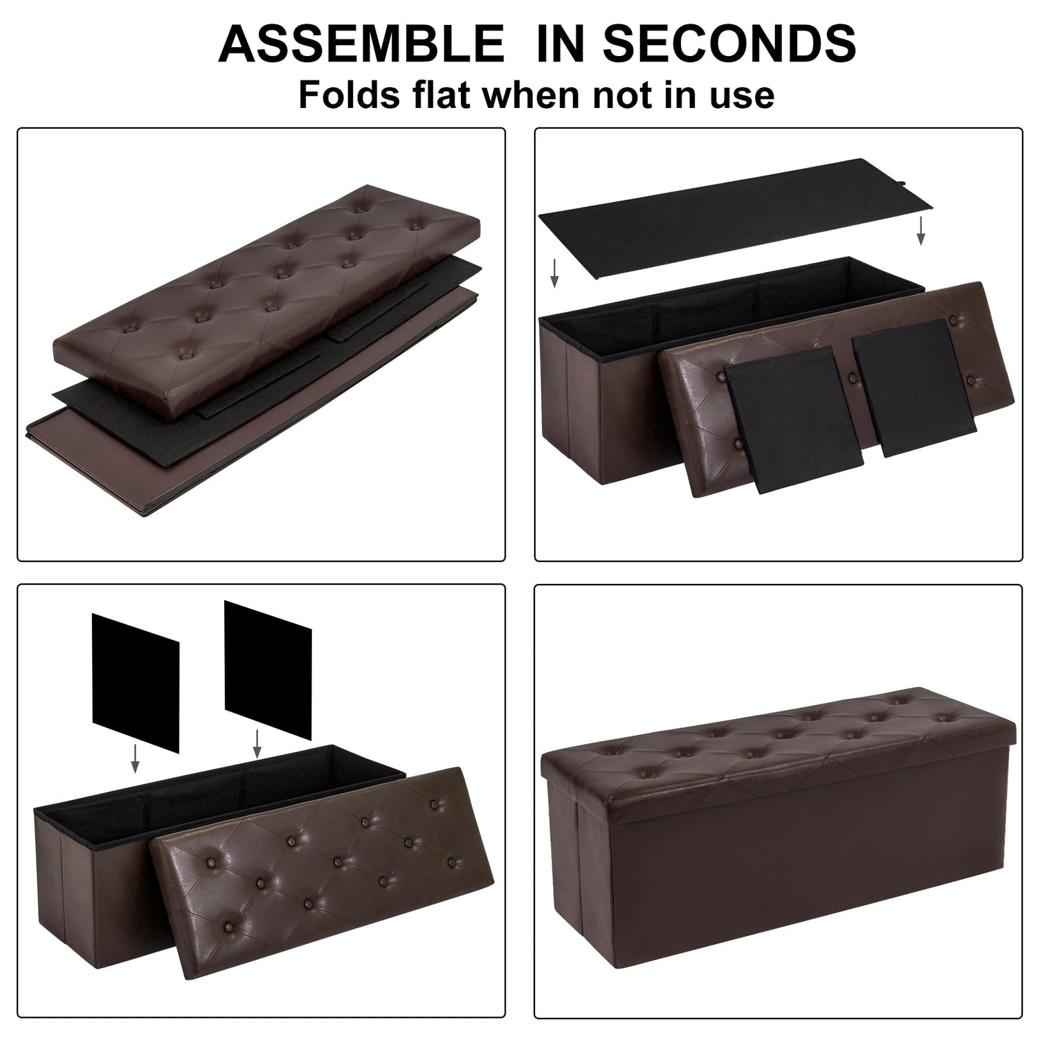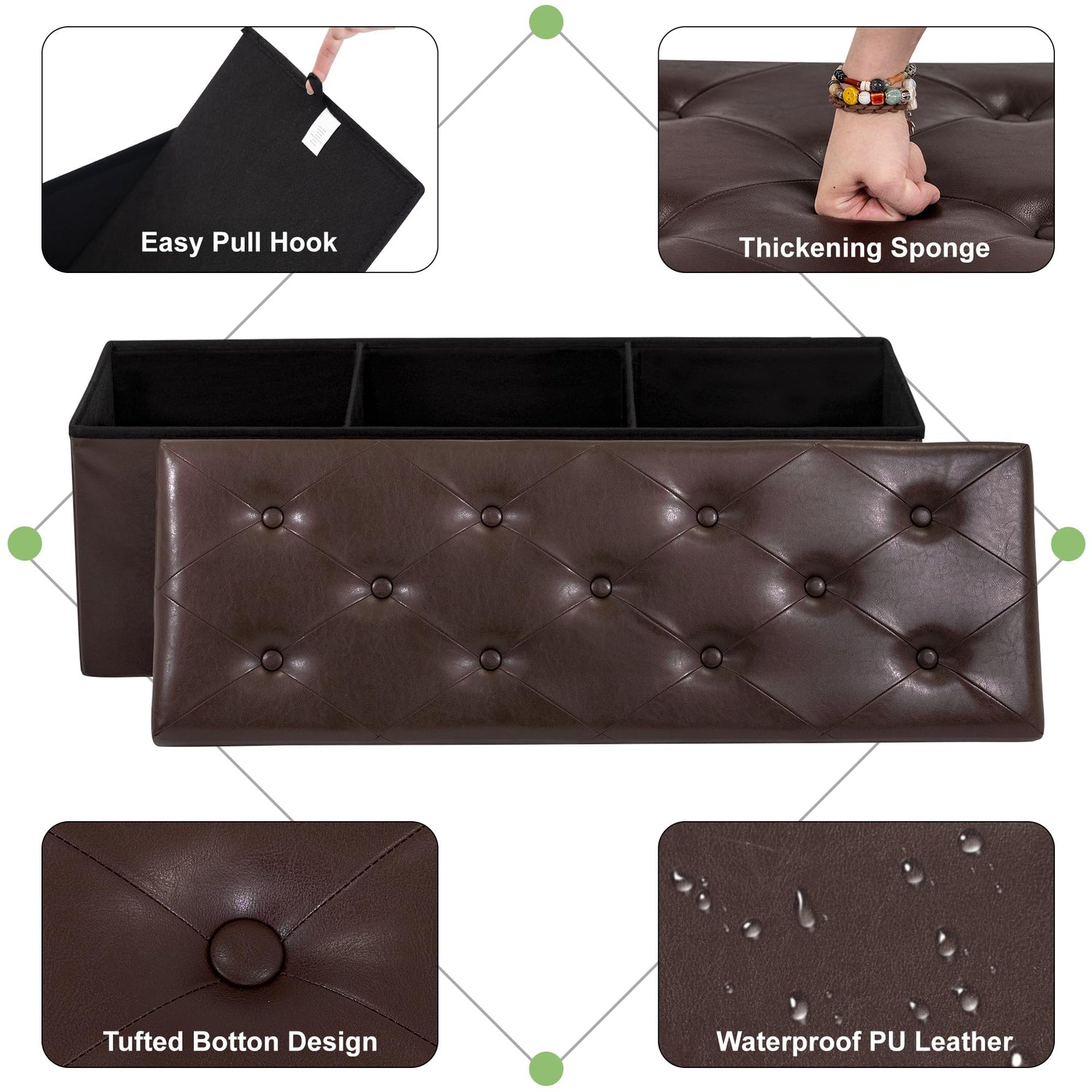 GLAXYFUR Storage Ottoman Bench, 43 Inches Folding Ottoman with 2 Dividers, PU Leather Foot Rest, End of Bed Bench, Storage Chest for Living Room, Bedroom and Entryway, Brown