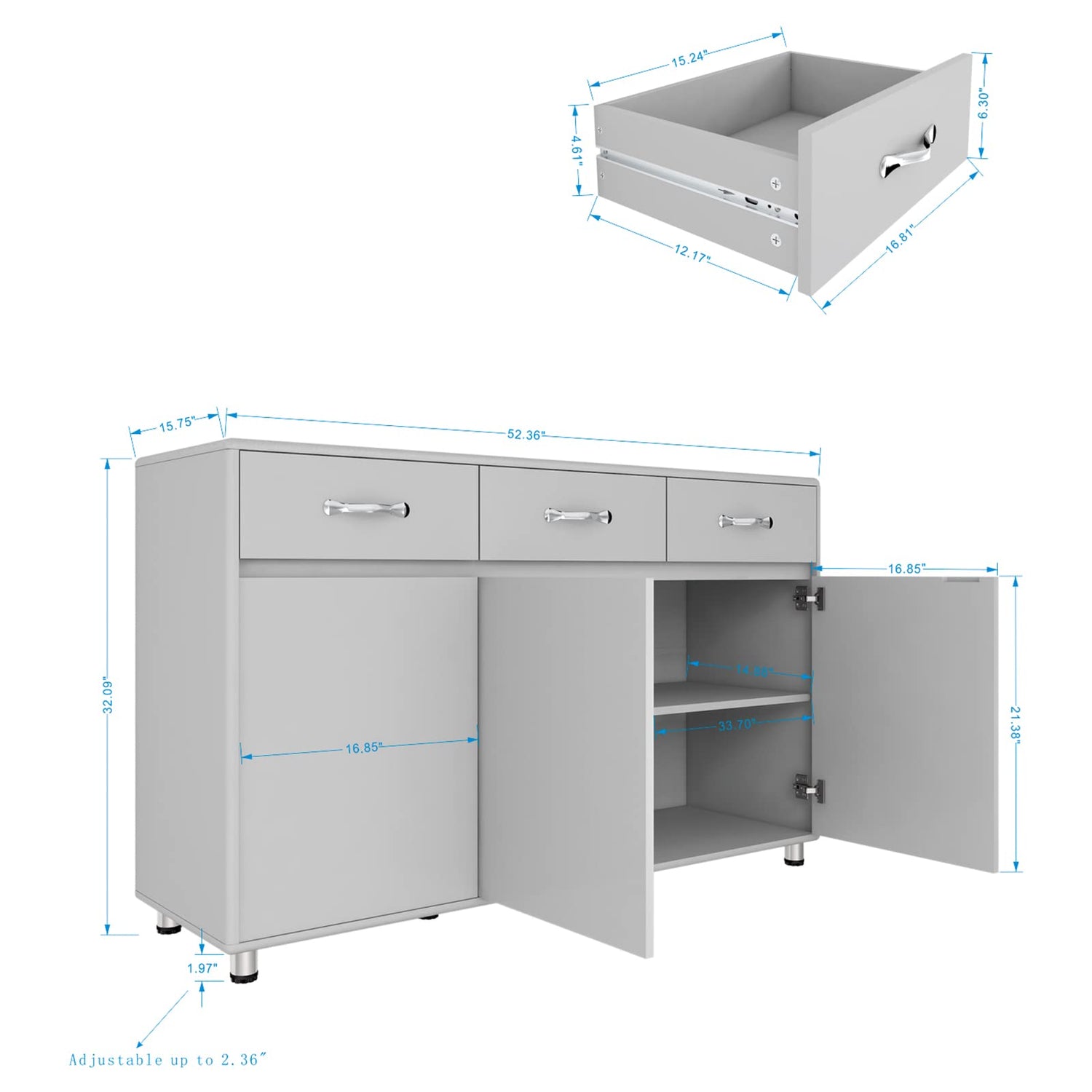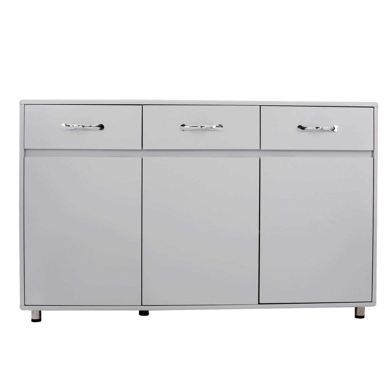 GLCHQ Storage Drawer File Cabinet Side Cabinet Entryway Console Side Tables with Three Drawers and Three Doors for Office or Kitchen Room (Three Doors, Grey)