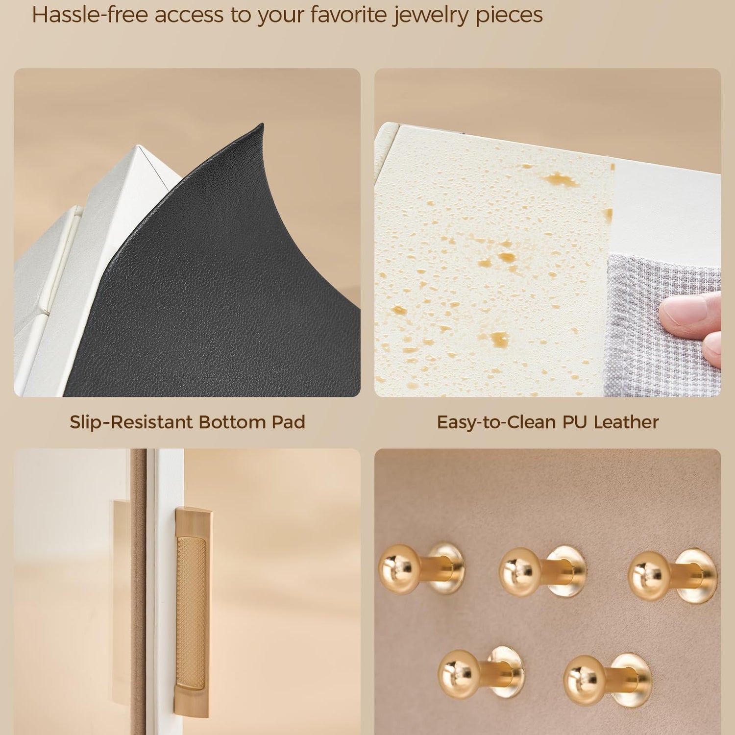 • 【Stylish & Versatile Use】With its white PU leather and matte gold hardware, this jewelry organizer adds a touch of elegance to any bedroom vanity, closet or livingroom. It’s not just for storage, it’s a beautiful decor piece for your home.