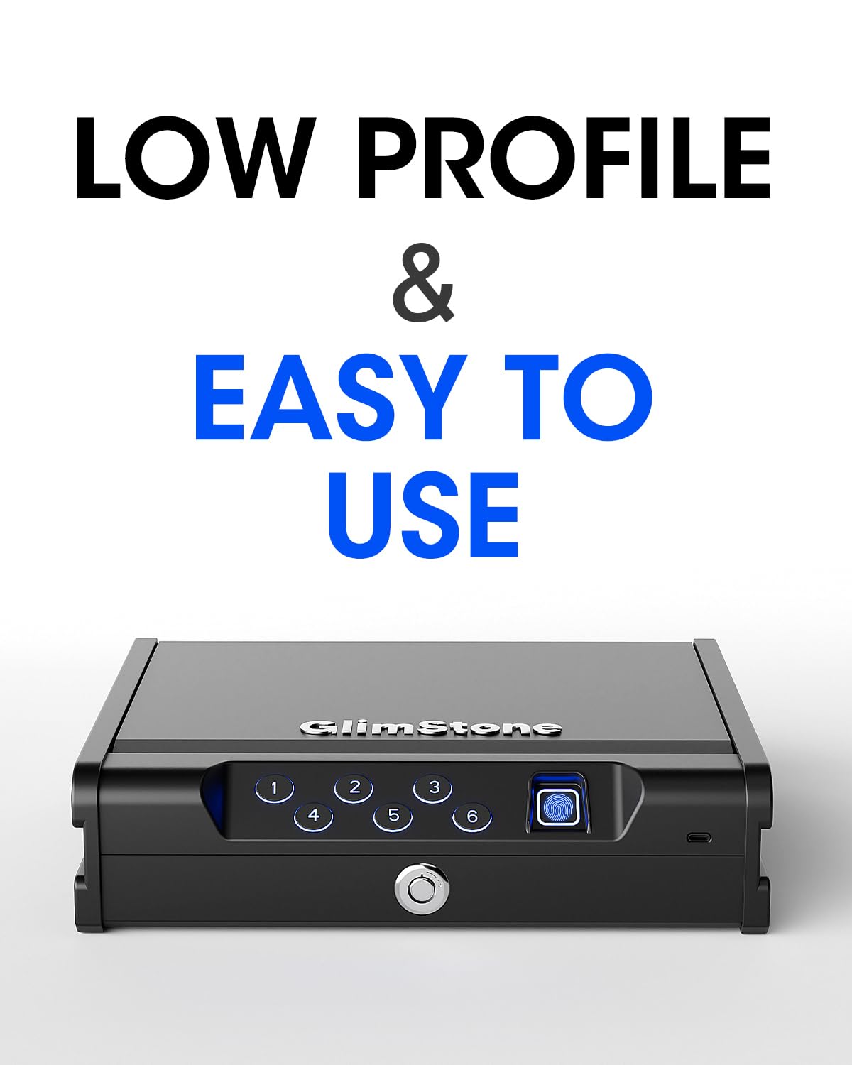 Glimstone Gun Safe, Biometric Gun Safe for Pistols, Easy Edition, 3 Ways Quick Access With Fingerprint/Digital Keypad/Key, Smart Handgun Safe for Home Bedside Nightstand Car