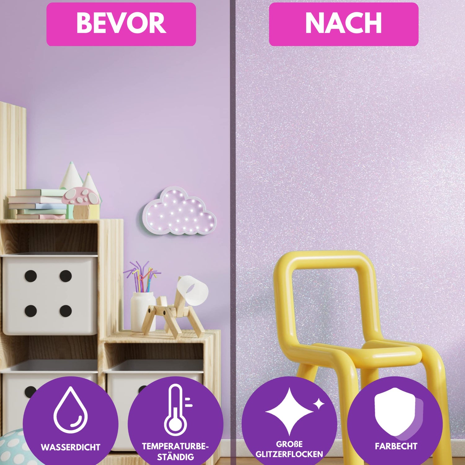 - Non-toxic and child-safe – These glitter crystals for paint are 100% non-toxic and child-safe. These non-toxic paint crystals for walls are even temperature-resistant and waterproof! Use this paint glitter with your favorite paint colors on your living room, kitchen, or bathroom walls. You can even sparkle your children's bedroom ceiling for a "stars in the sky" effect