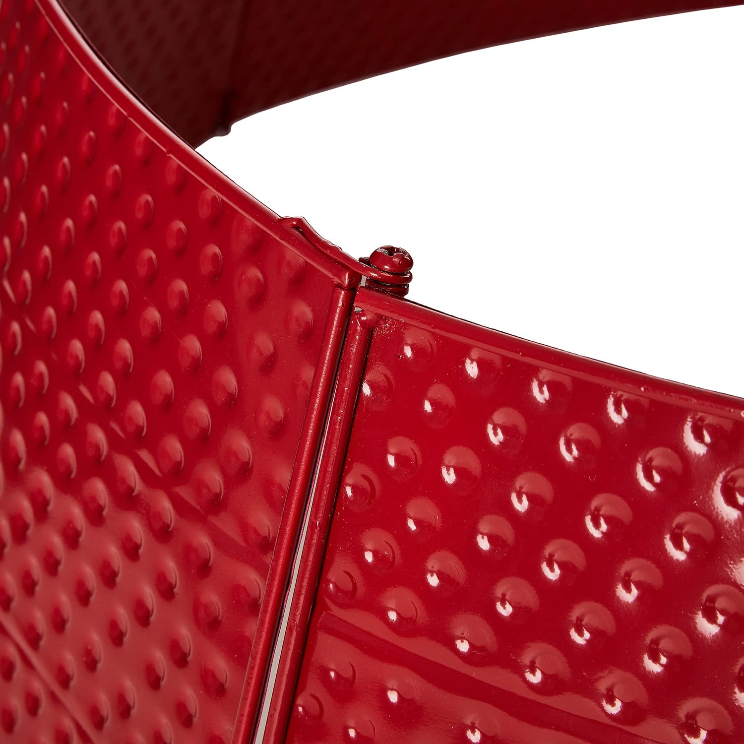Glitzhome 40.5" D Christmas Red Hammered Metal Tree Collar, Decorative Tree Stand Cover Tree Ring for Christmas Decor