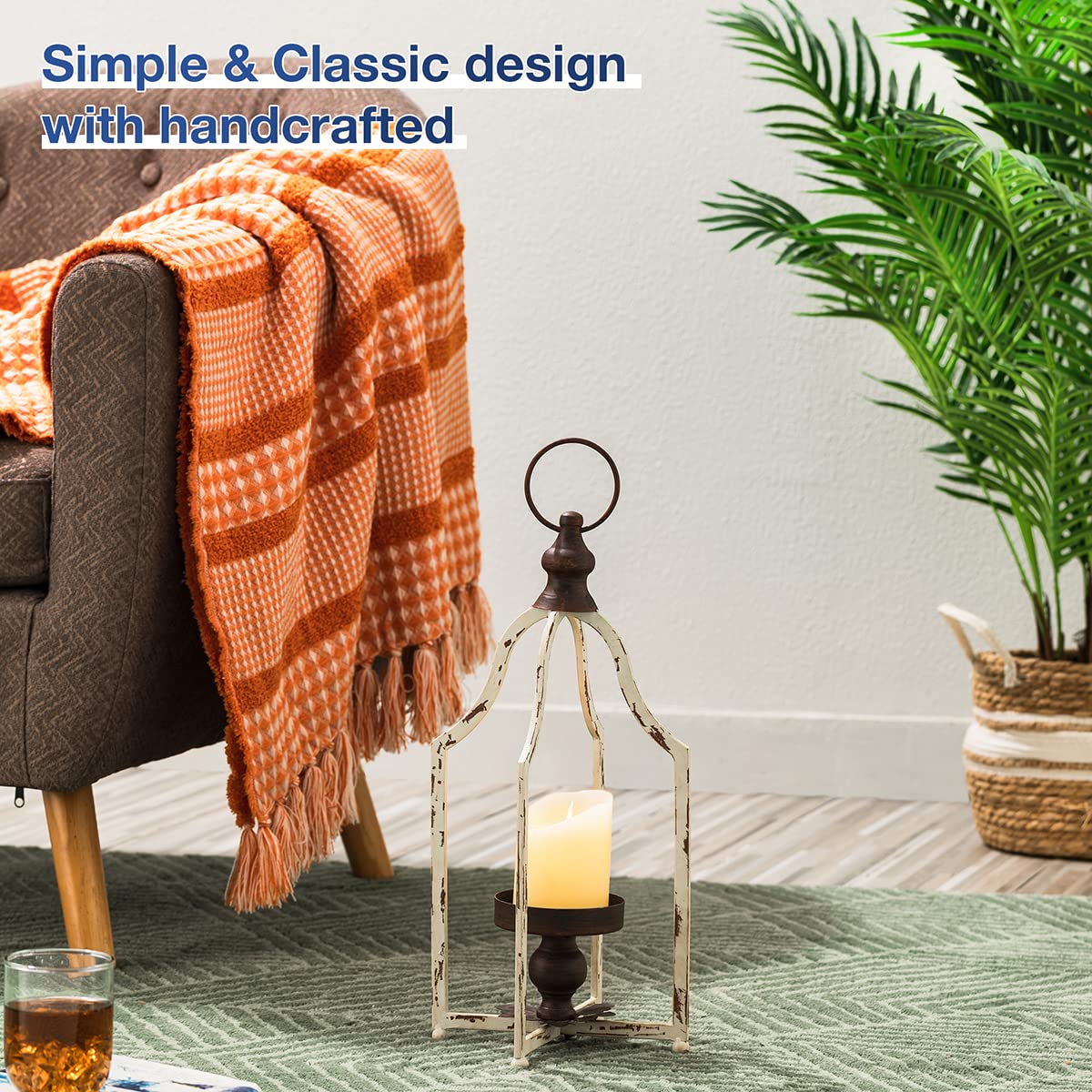 Glitzhome Farmhouse White Metal Lanterns Decorative Hanging Candle Lanterns (White Small)