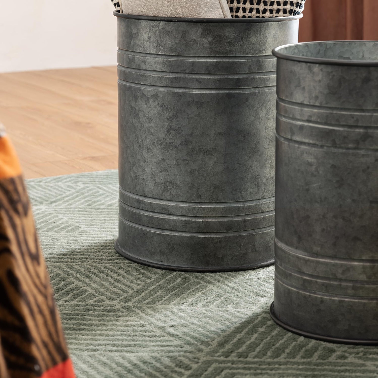 - 【Set of 2】: This Farmhouse Decor consists of 2 pieces set of galvanized steel storage stools that can also act as accent or side table for a rustic appeal. The tables nest nicely together and work beautifully with a number of farmhouse furniture.