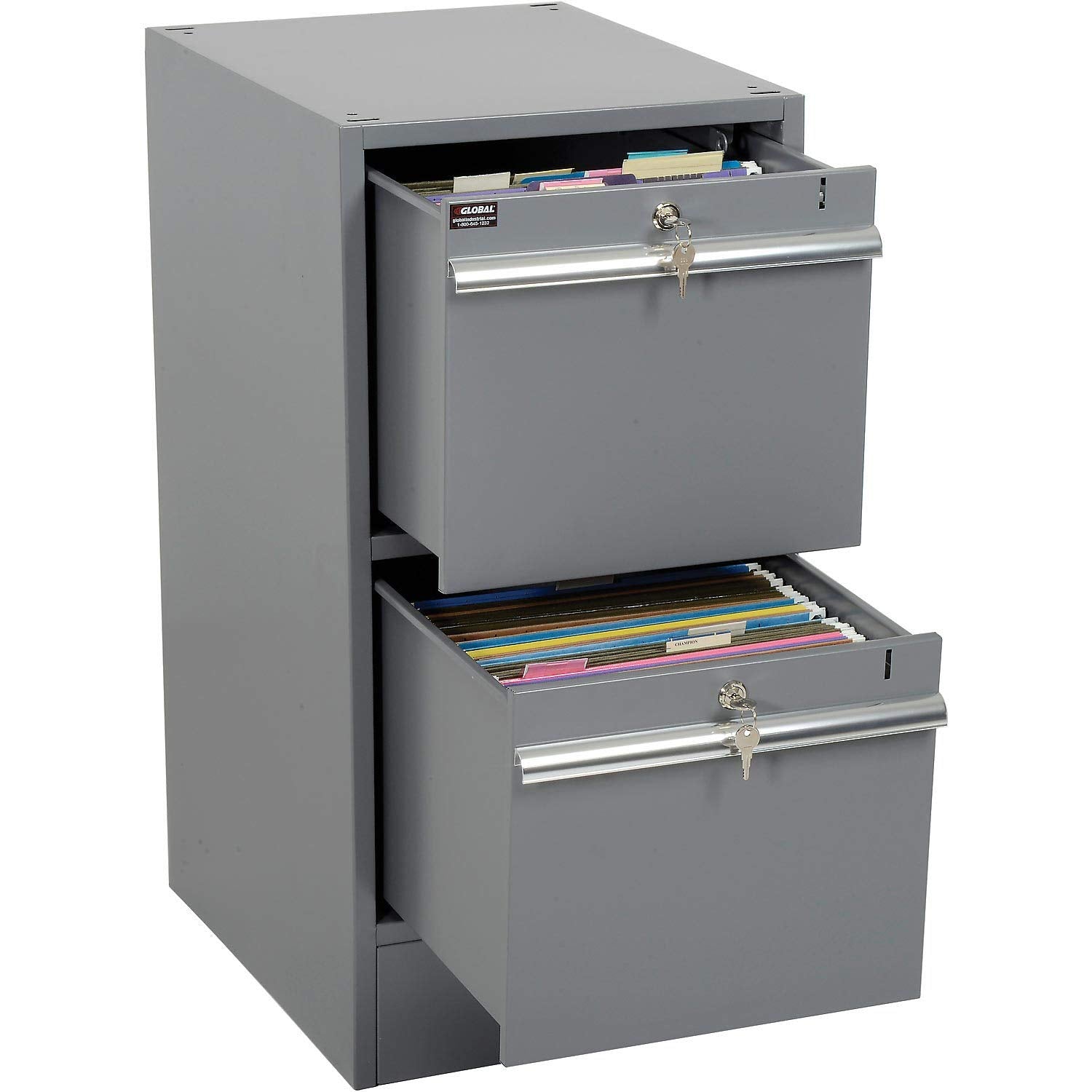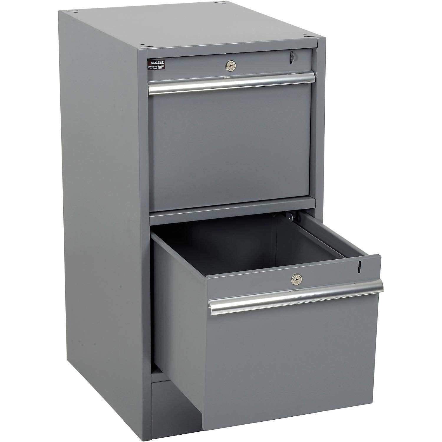 Details: Pedestal workbench is made with strong, all welded steel that withstands tough industrial environments, and provides storage for any application. Pedestal drawers offer smooth drawer operation using nylon rollers and full-length aluminum handles. All drawers individually lock using cylinder locks for secure storage. Inside drawer dimensions are 13-1/4"W x 18"D x 11"H and Outside Dimensions are 14"W x 19"D x 12"H. Two drawers are 5-1/2"H, lower drawer is 12"H and accepts hanging file folders. Cabinet includes an adjustable shelf, and a locking door with recessed handle and cylinder lock. Gray powder coat finish. Overall pedestal dimensions are 15-3/4"W x 20"D x 32"H., Lot of 1