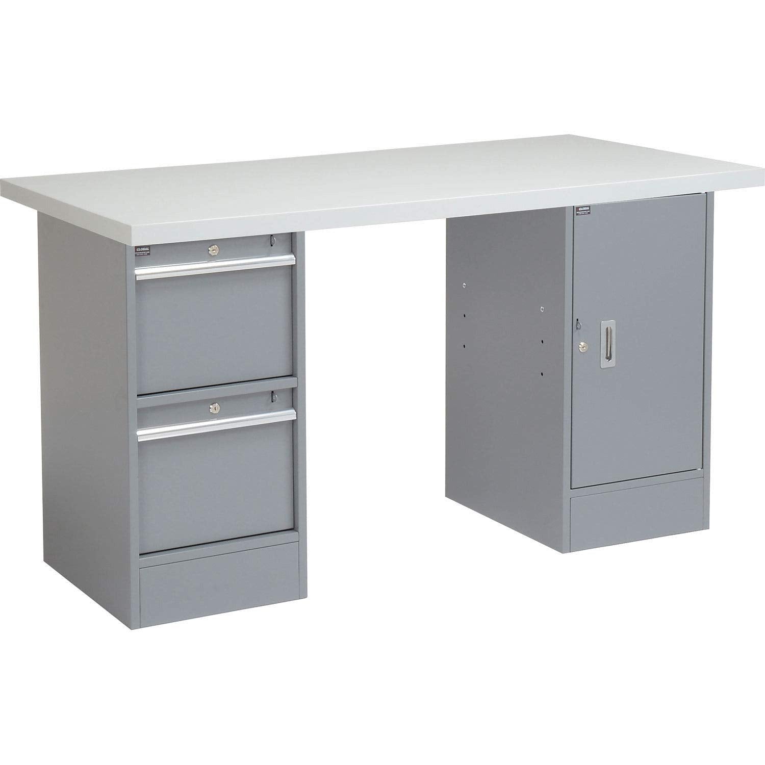 Global Industrial 60" W x 30" D Workbench, 1-3/4" Laminate Square Edge Top, 2 Drawer/Cabinet