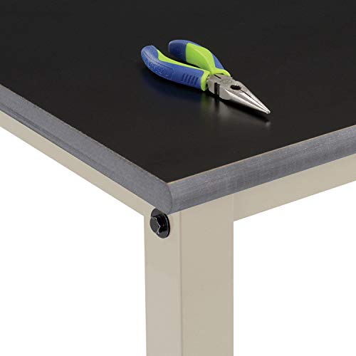 Details: Tough black phenolic resin top withstands moisture, chemicals and heavy use and features a radius edge for safety. Legs are height adjustable 28 to 34"H at 2" increments making this bench ideal for schools, factories and more. 5000 lb. capacity. Weight should be evenly distributed. Includes adjustable leveling floor glides and leveling foot plates that allow floor anchoring., Lot of 1
