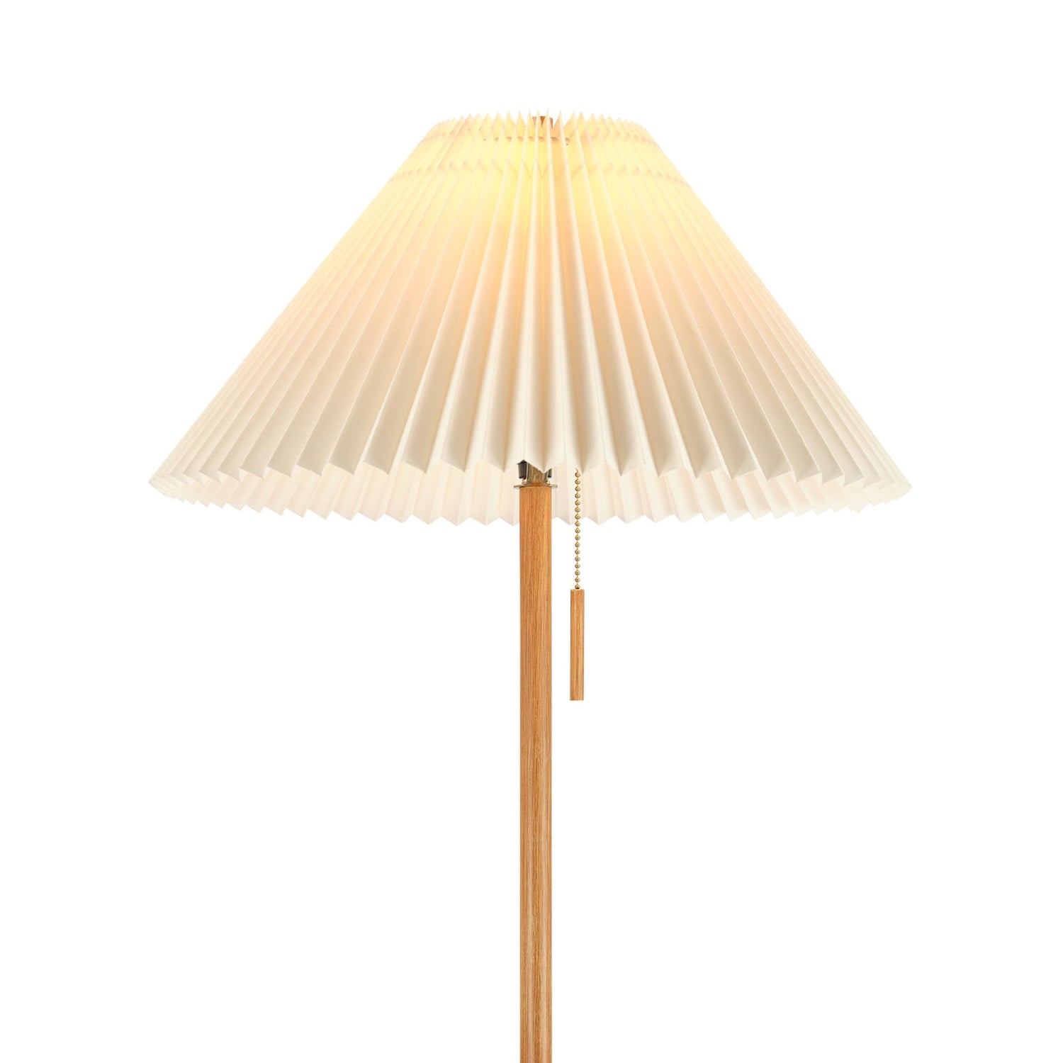 Globe Electric 61000053 62" Floor Lamp, Wood Toned, Pleated Fabric Shade, Flat Base, Pull Chain Switch on Socket, Reading Lamp, Home Office Accessories, Living Room Décor