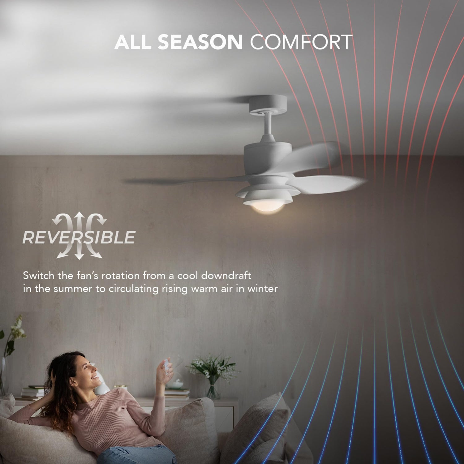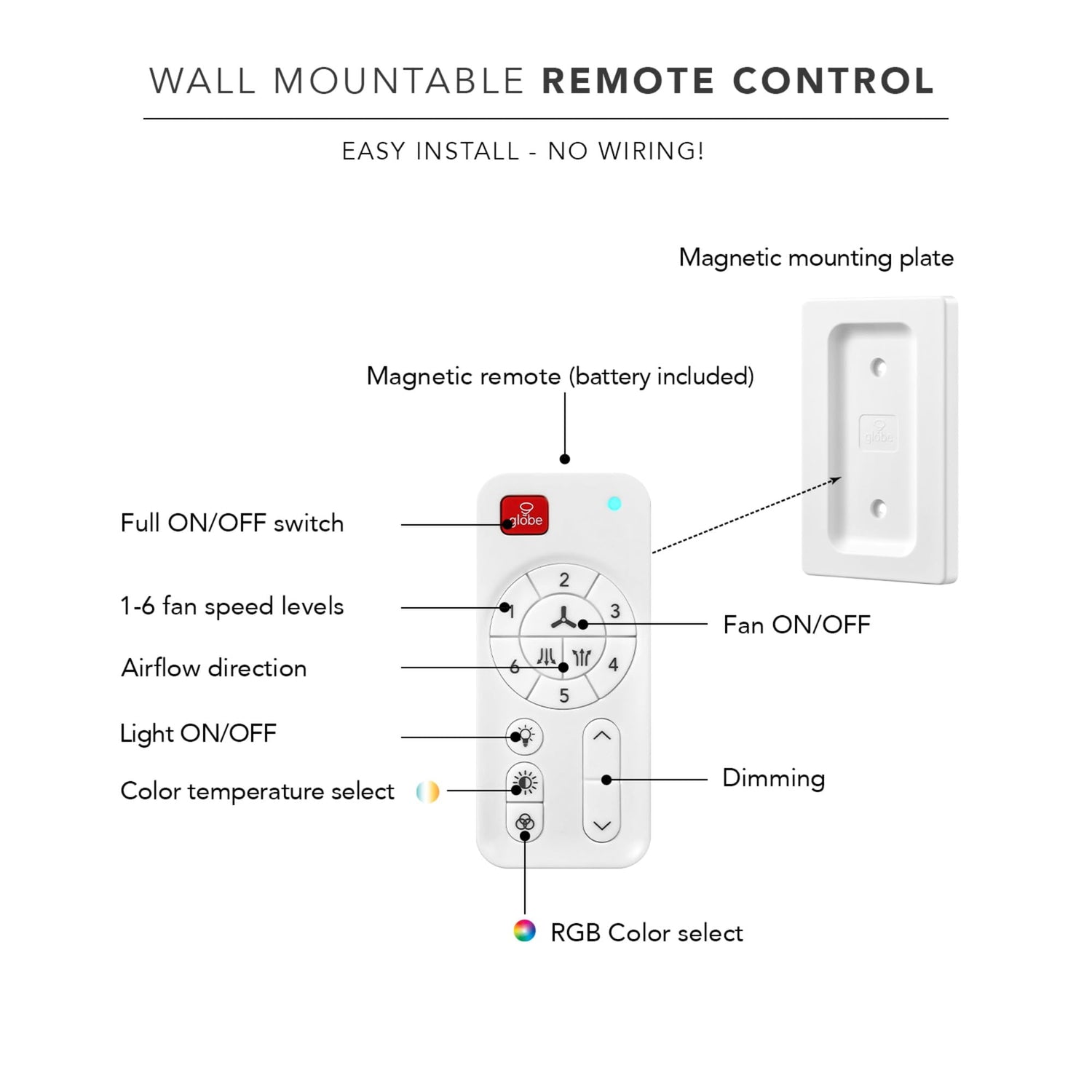 Details: The Globe Electric 3-Blade Smart Ceiling Fan is the epitome of modern comfort. Integrated with an 18W LED light, this modern fan light provides efficient illumination with 800 Lumens and an adjustable color temperature ranging from 2000 to 5000 Kelvins. The motor provides powerful airflow with 6 different speed levels, reaching up to 5000 cubic feet per minute – ideal for all season airflow. DC motor fans are 70% more energy efficient than other AC motor fans on the market, saving the environment and your wallet at the same time! Embrace the smart living experience as this small ceiling fan with light is designed with advanced technology and is perfect for most small/medium room sizes. Pair your fixture with the included remote control or Bluetooth it to the Globe Electric Globe Suite app on your cellular phone - you have the power to control your area effortlessly! Elevate your space with the perfect combination of innovation, ease, and style.