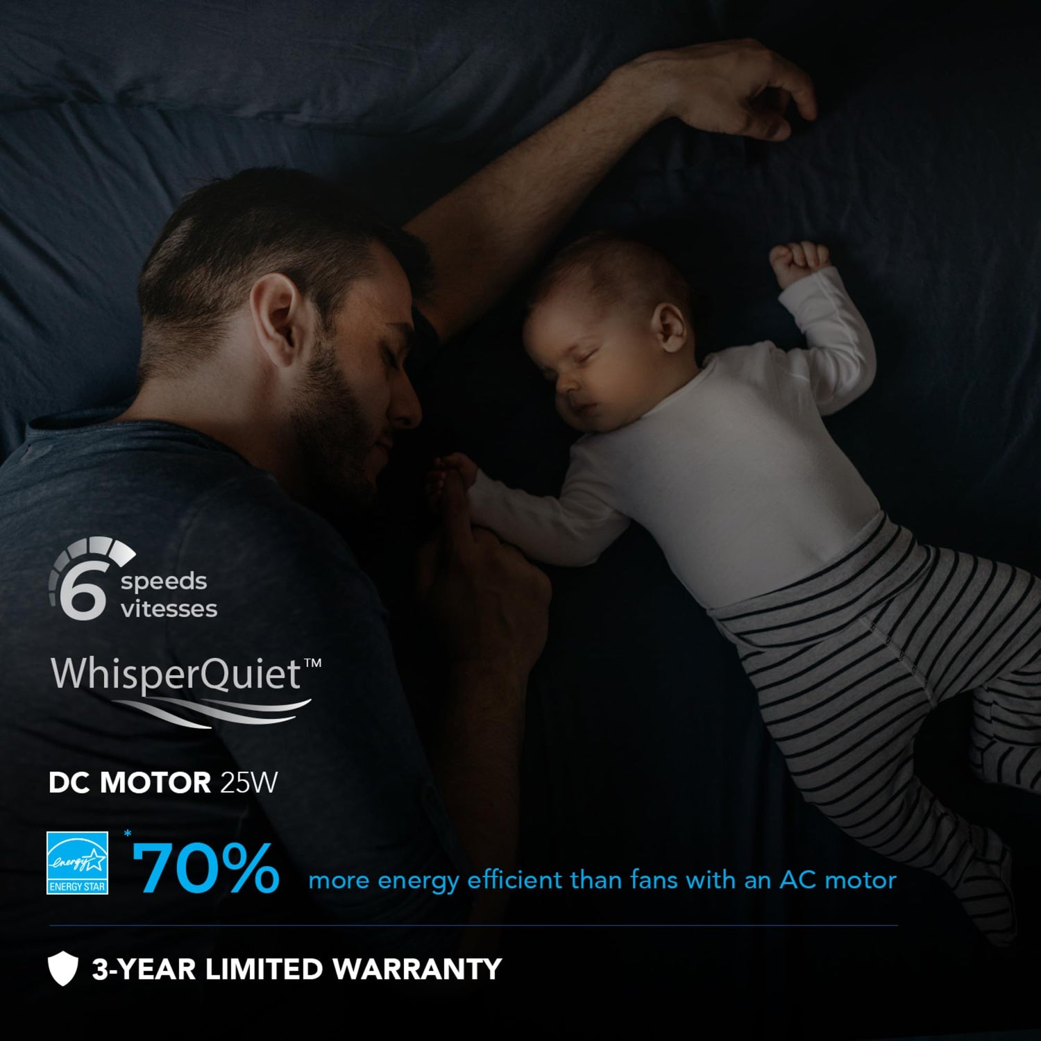 - ENERGY-SAVING DC MOTOR: with a reversable airflow motor reaching a maximum of 5000 cubic feet per minute, at 6 different speed levels - this fan is 70% more energy efficient than other AC motor fans