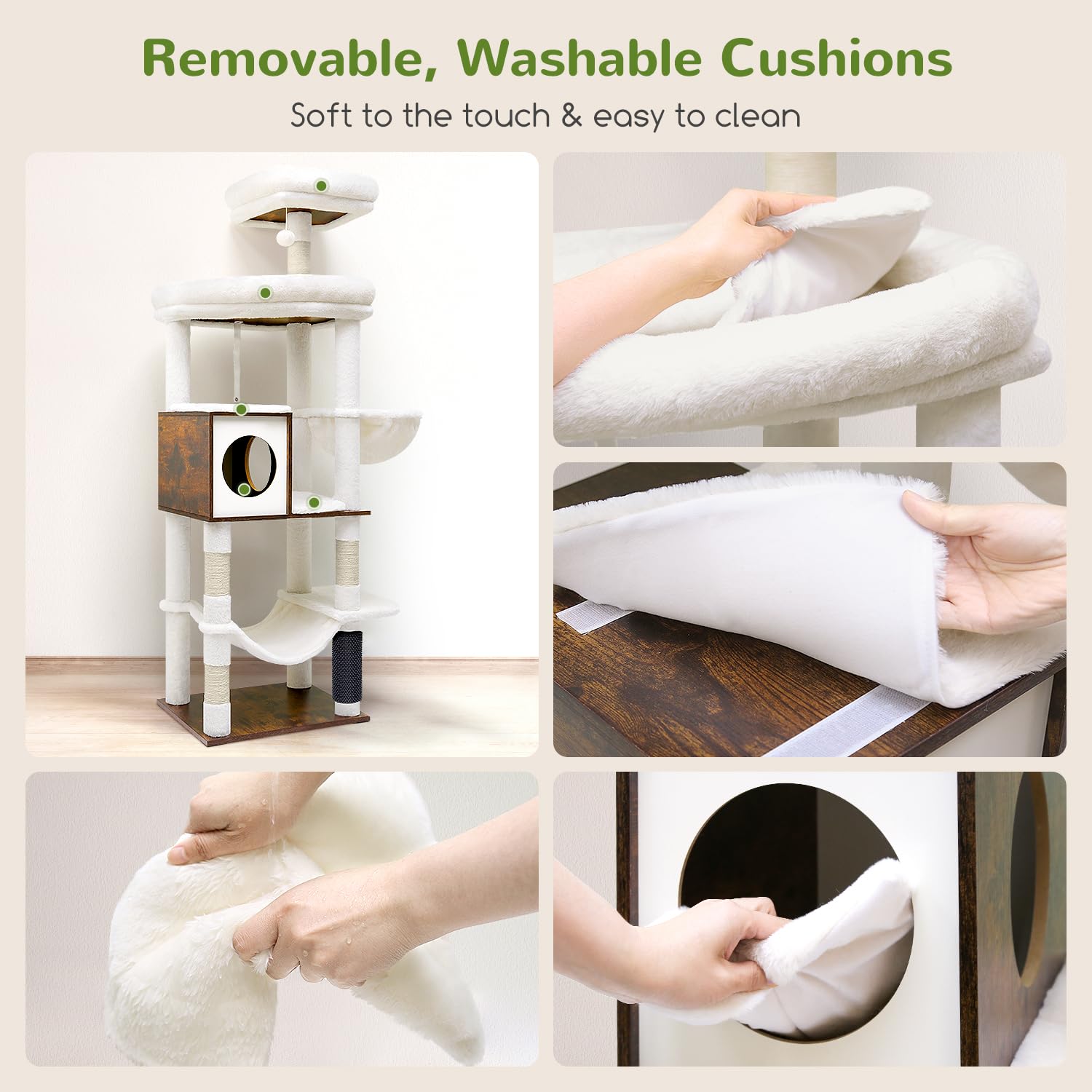 Globlazer W66 Cat Tree Tall 66-inch Modern Cat Tower for Indoor Cats Aesthetic Cat Tree with 4 Scratching Posts, 5 Washable Removable Cushions, Cat Furniture