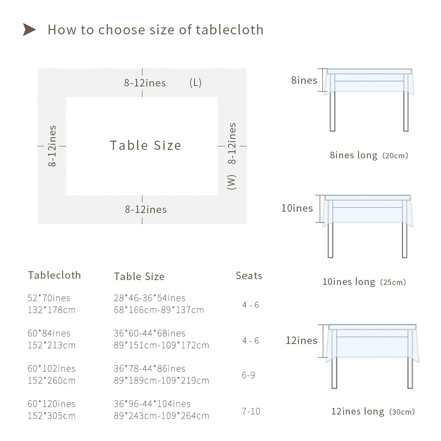 - [SIZE] : SEATS 4 TO 6 PEOPLE - View the tablecloth size chart located in the images to help you find the right size for your table. We want to ensure you are matched with the perfect size and have a tablecloth you'll love