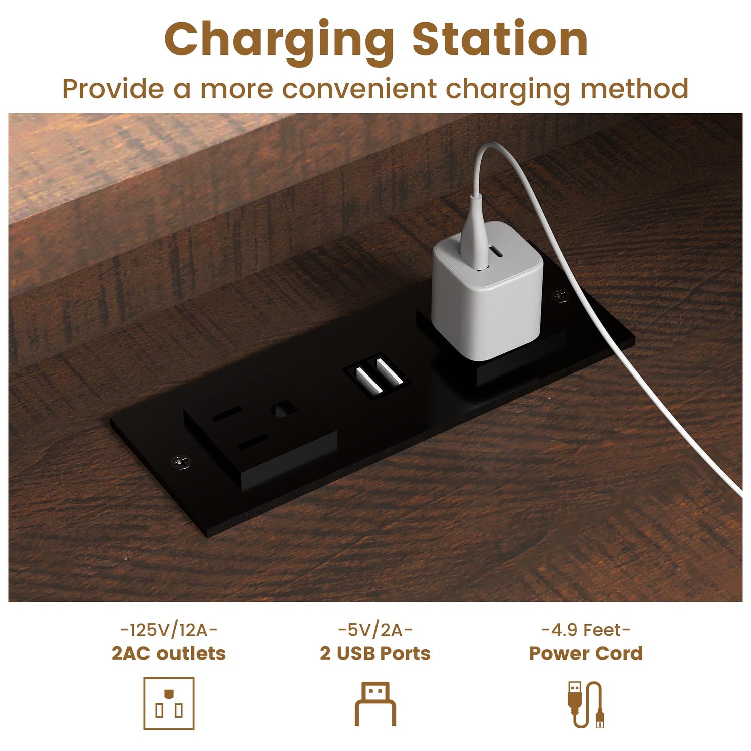 - Enhanced Convenience for Modern Living: Enjoy modern convenience with 2 AC outlets and 2 USB ports for charging multiple devices simultaneously—perfect for mobile phones, headphones, watches, laptops, and table lamps. Additional features include a top shelf space and adjustable LED light strip with various settings for light colors, brightness, music, voice, and timing.