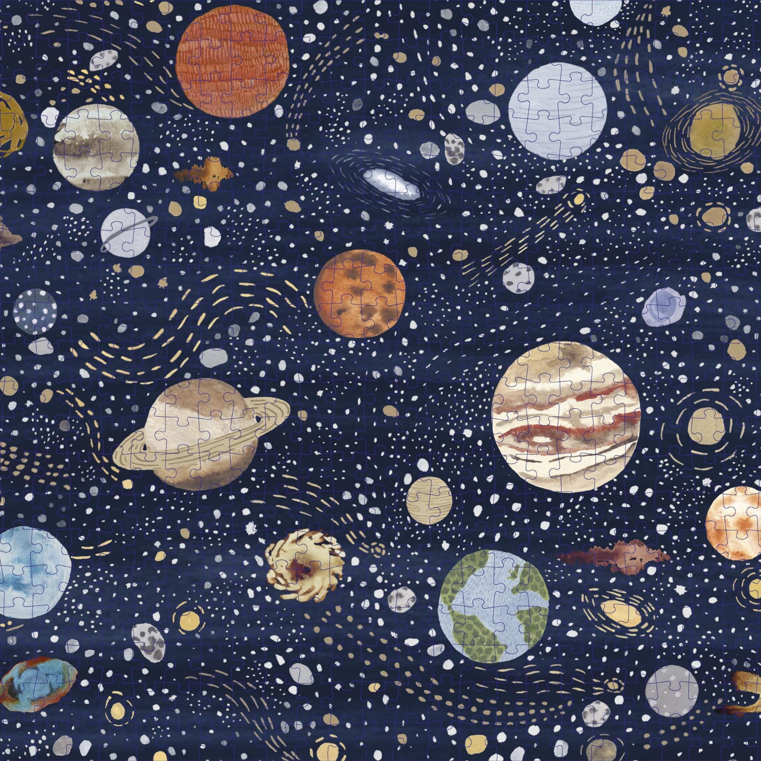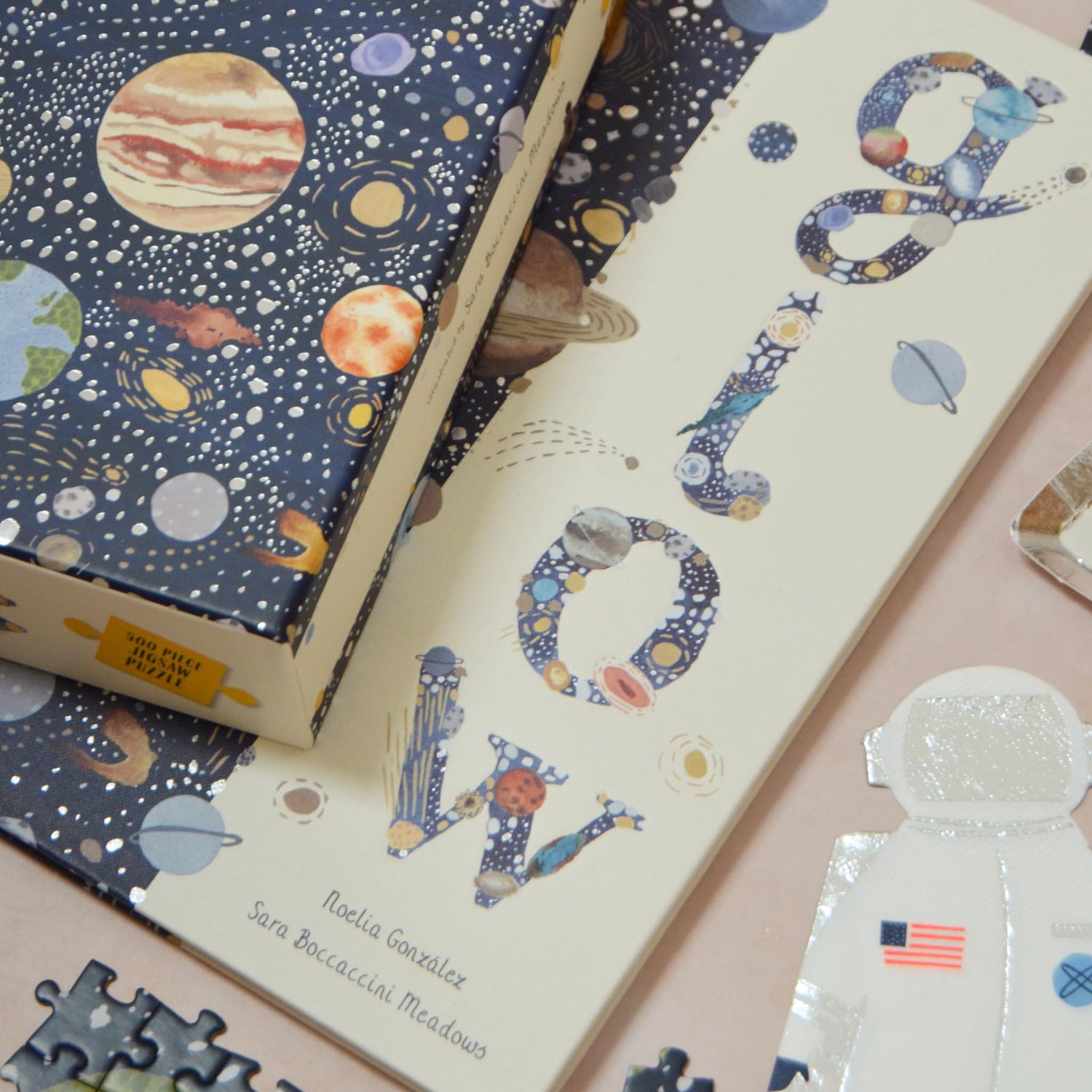 This stunning puzzle illustrated by celebrated artist Sara Boccaccini Meadows depicts the planets and moons of our solar system with a beautiful starry night sky backdrop. The silver foil and textured box contain a 500-piece puzzle and double-sided poster, making this a perfect gift to bring the family together. Refer to the poster to see how your completed puzzle should look, then flip it over to discover facts, quizzes, and activities on the reverse side.