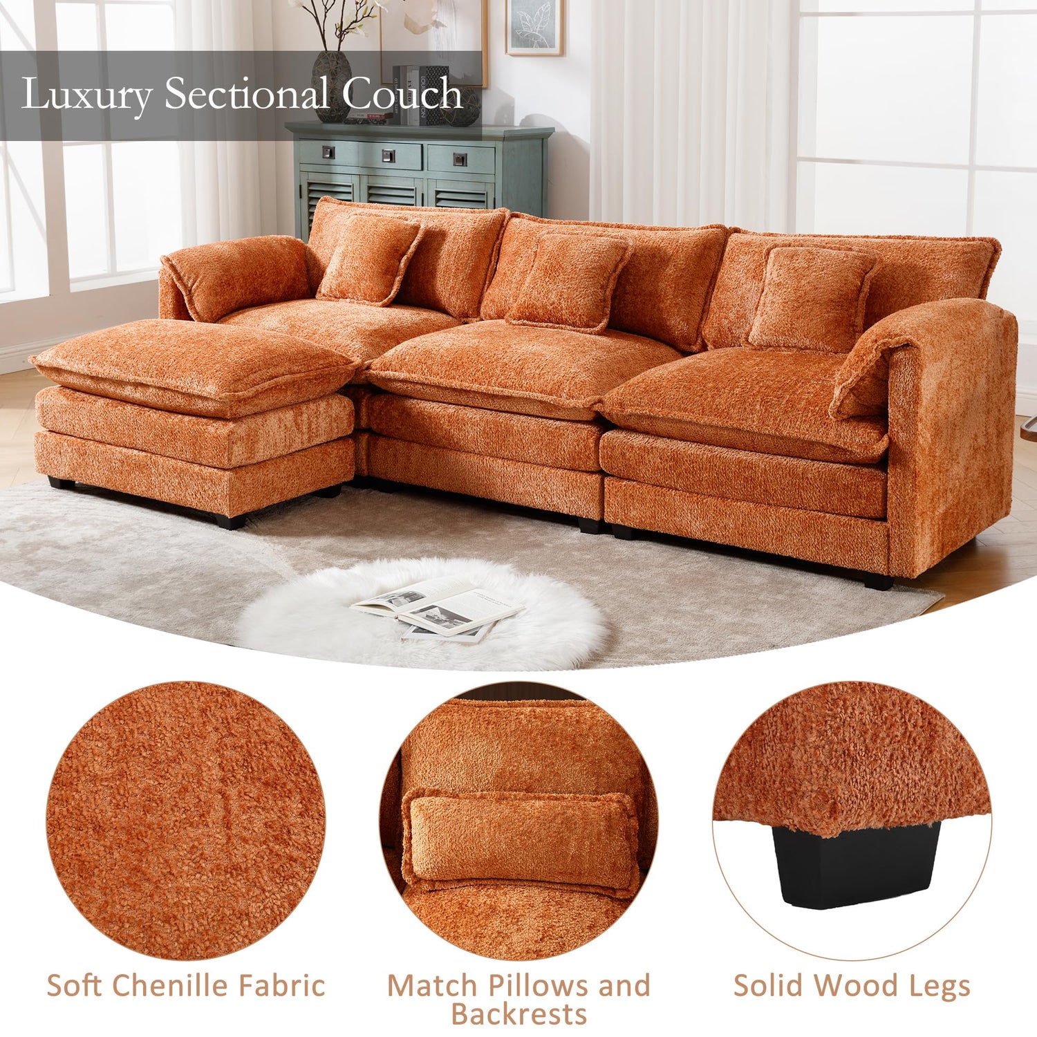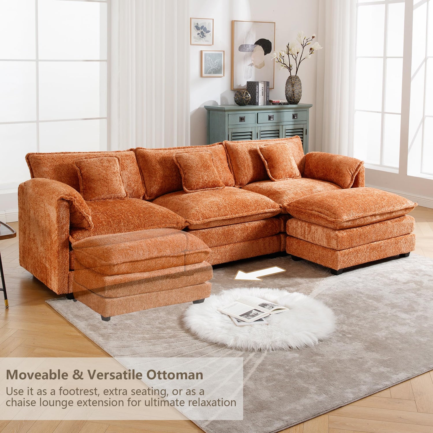 GNIXUU 112" Oversized Sectional Sofa Cloud Couch for Living Room, Modern Chenille L Shaped Couch, Comfy Boucle Modular Sofa Sleeper with Moveable Ottoman & Memory Foam(Orange)