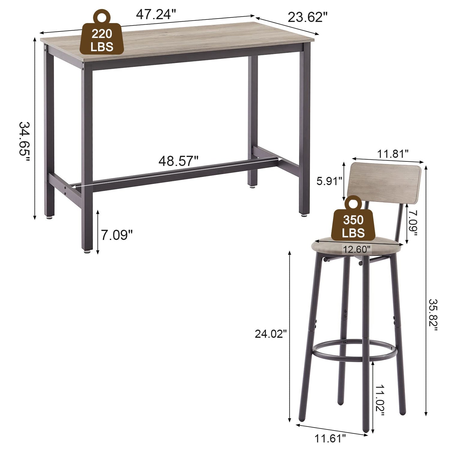 Every purchase comes with all necessary parts and hardware, along with clear instructions for easy assembly. Bring home the Industrial Grey Bar Table Set, and transform your dining experience into a stylish and relaxed gathering place.