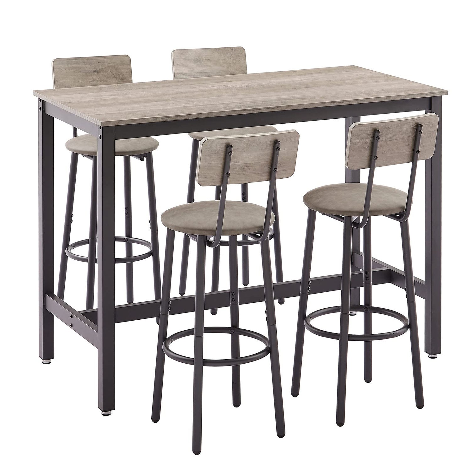Industrial Grey Bar Table Set with 4 PU Backrest Stools – 5-Piece Counter Height Dining Ensemble