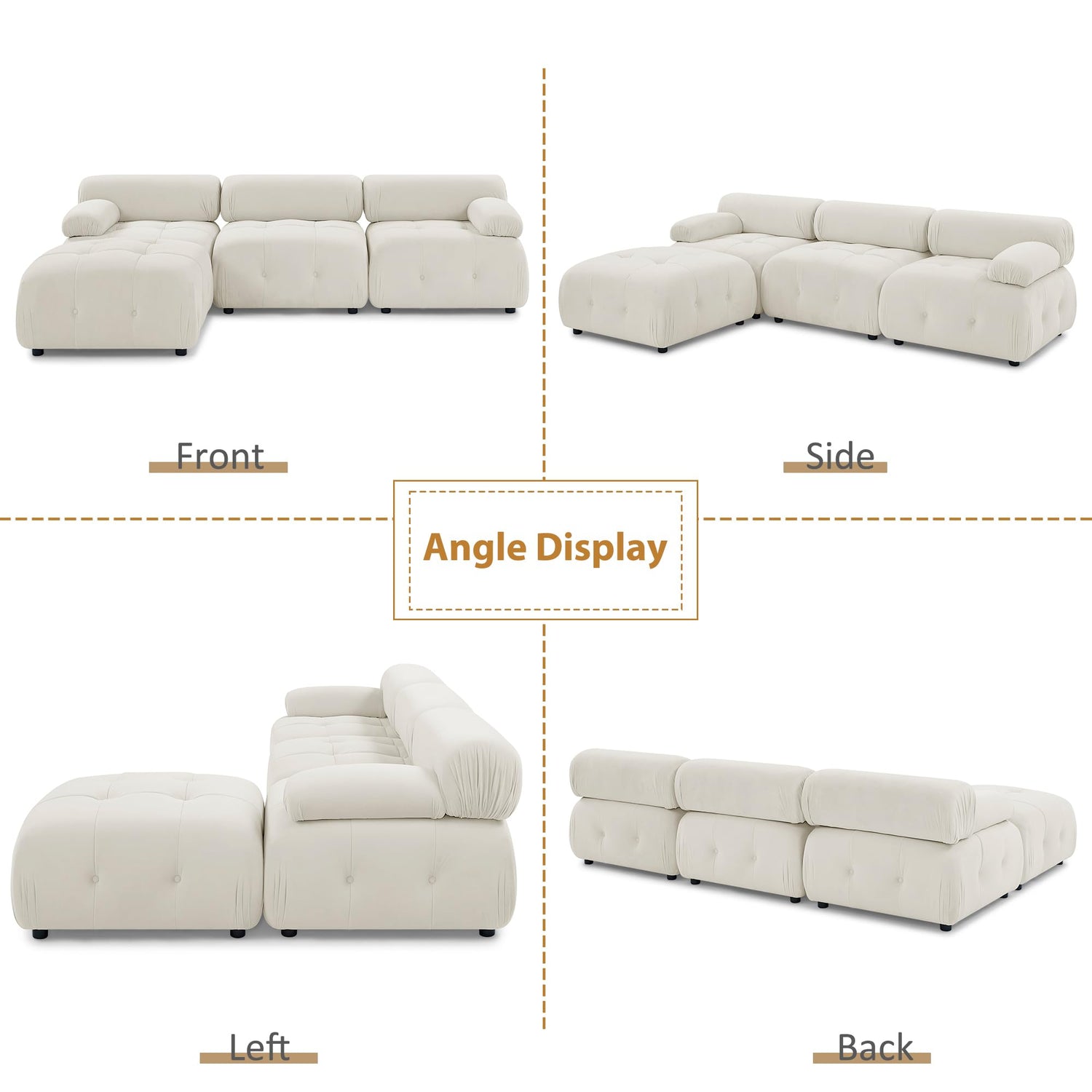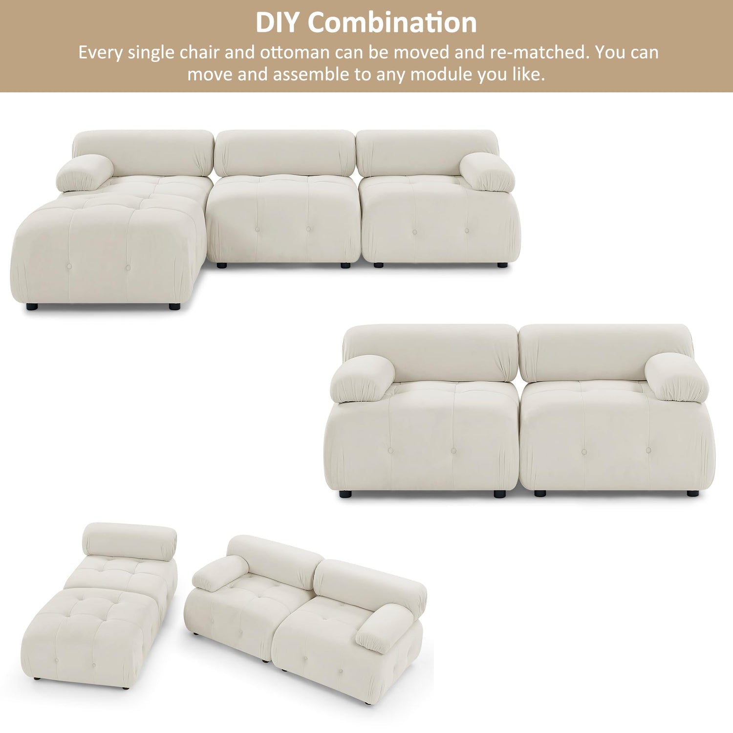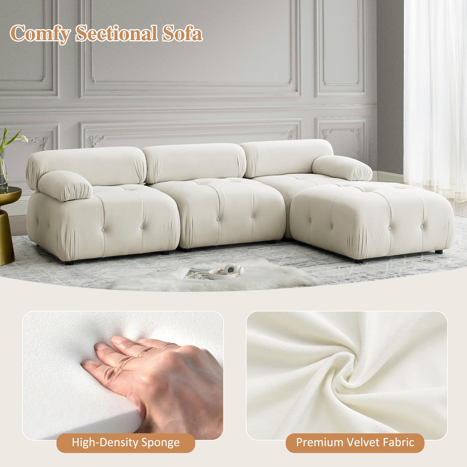 - 【Minimalist Sectional Sofa】This modular sectional sofa blends modern style with plush comfort. Soft, luxurious velvet fabric upholstery brings a chic and sophisticated look. Every chair in this sectional couch may be moved and mixed and matched.