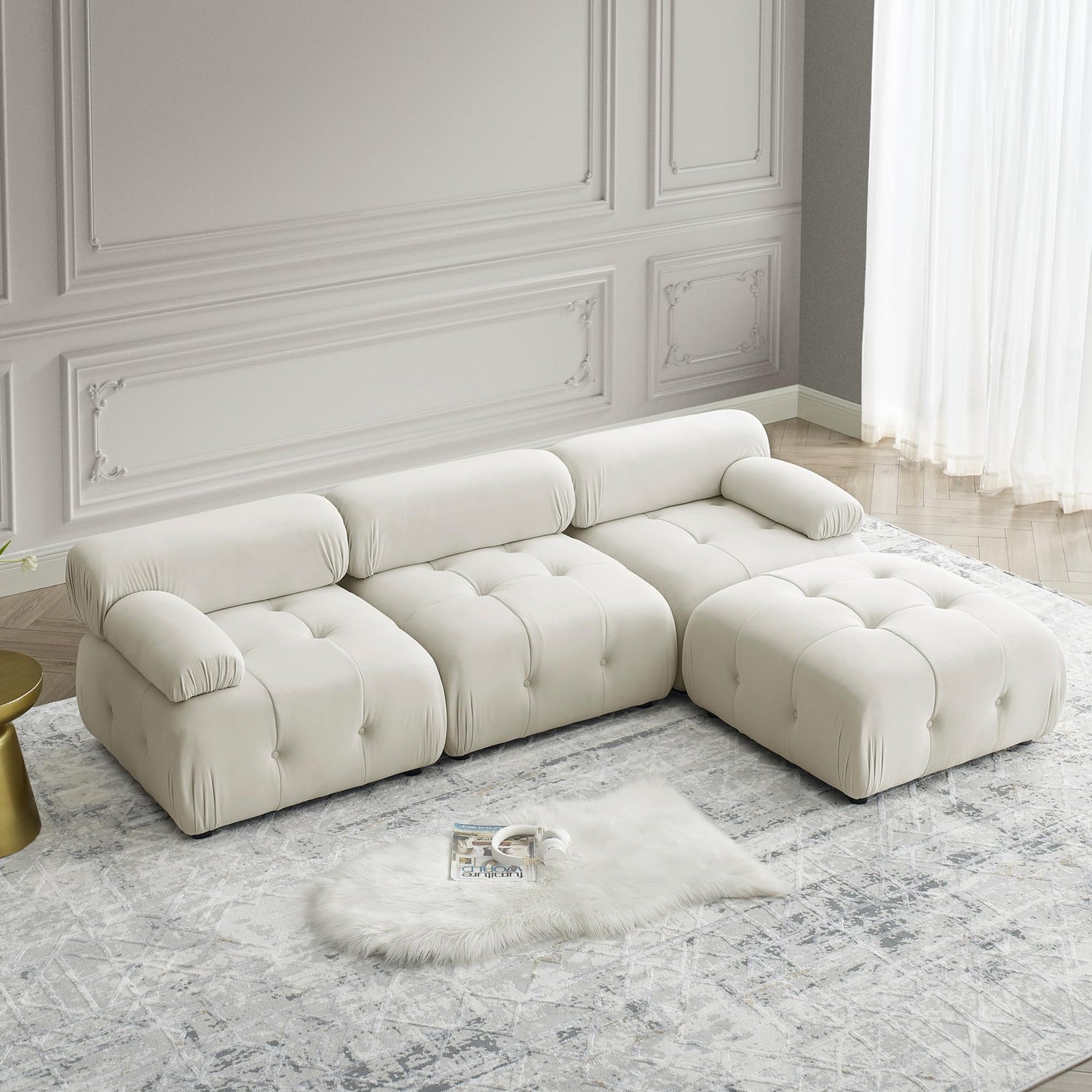 GNIXUU Modular Sectional Sofa, 93" Convertible L-Shaped Couch for Living Room, Modern Button Tufted Cloud Couches with Comfy Armrest, Beige Velvet