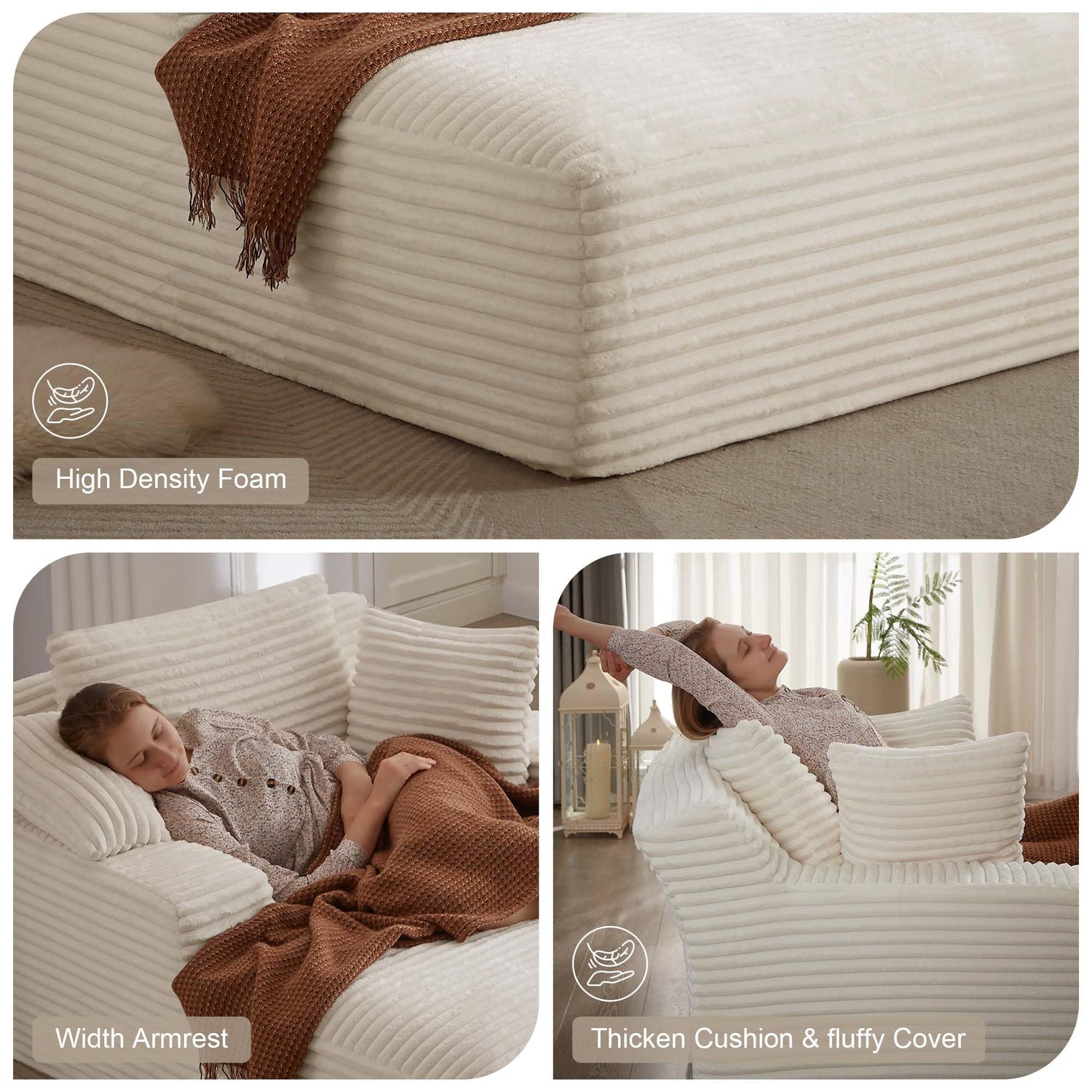 GNIXUU Oversized Chaise Lounge Chair Indoor, Comfy Fluffy Lounge Sofa Upholstered Sleeper Sofa Couch with Throw Pillows and Armrests, Corduroy Plush Cloud Chair for Living Room, Beige