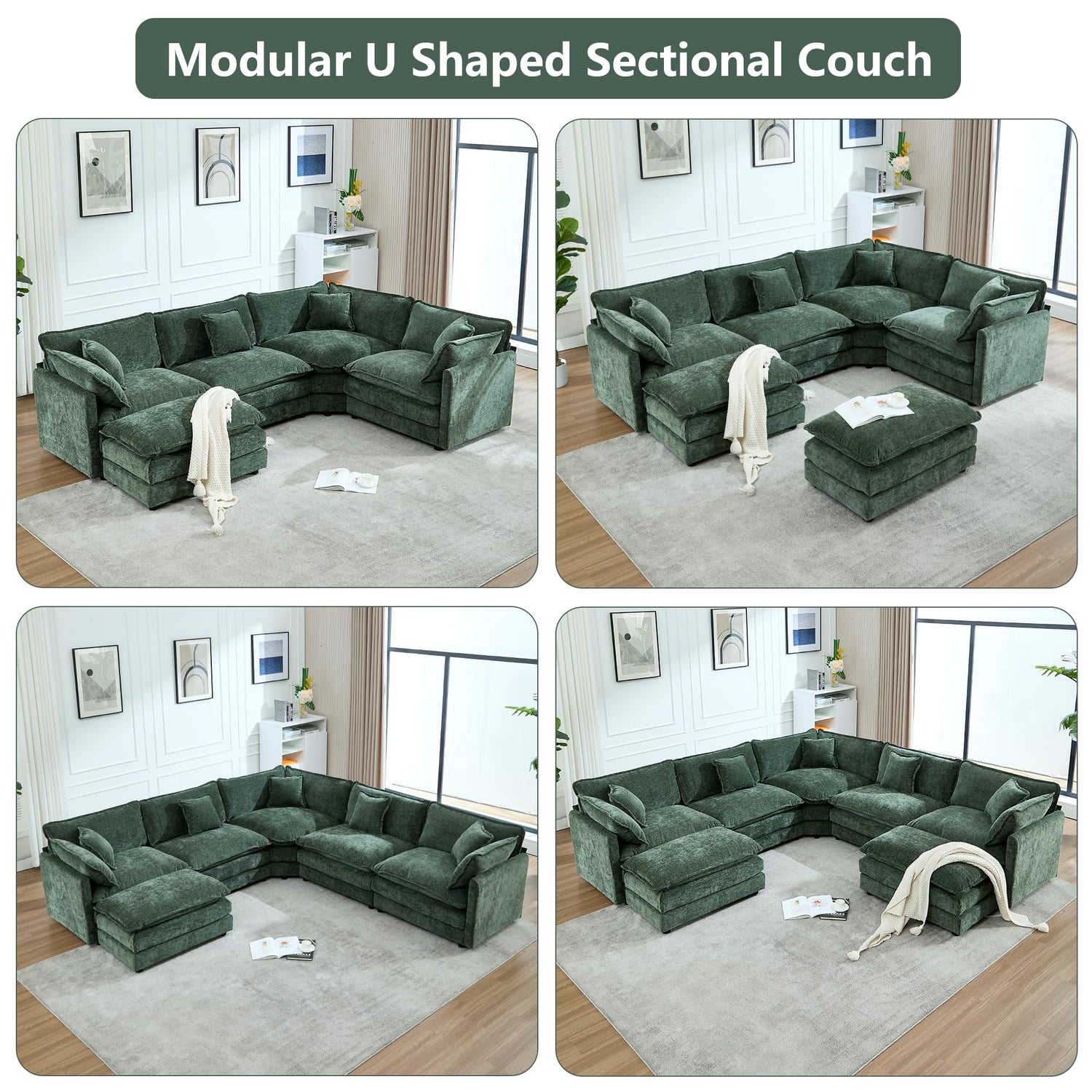 GNIXUU Oversized Modular sectional Sofa, Chenille Large Cloud Sectional Couches for Living Room, Convertible 5 Seater L Shaped Couch with Ottoman for Living Room, Green