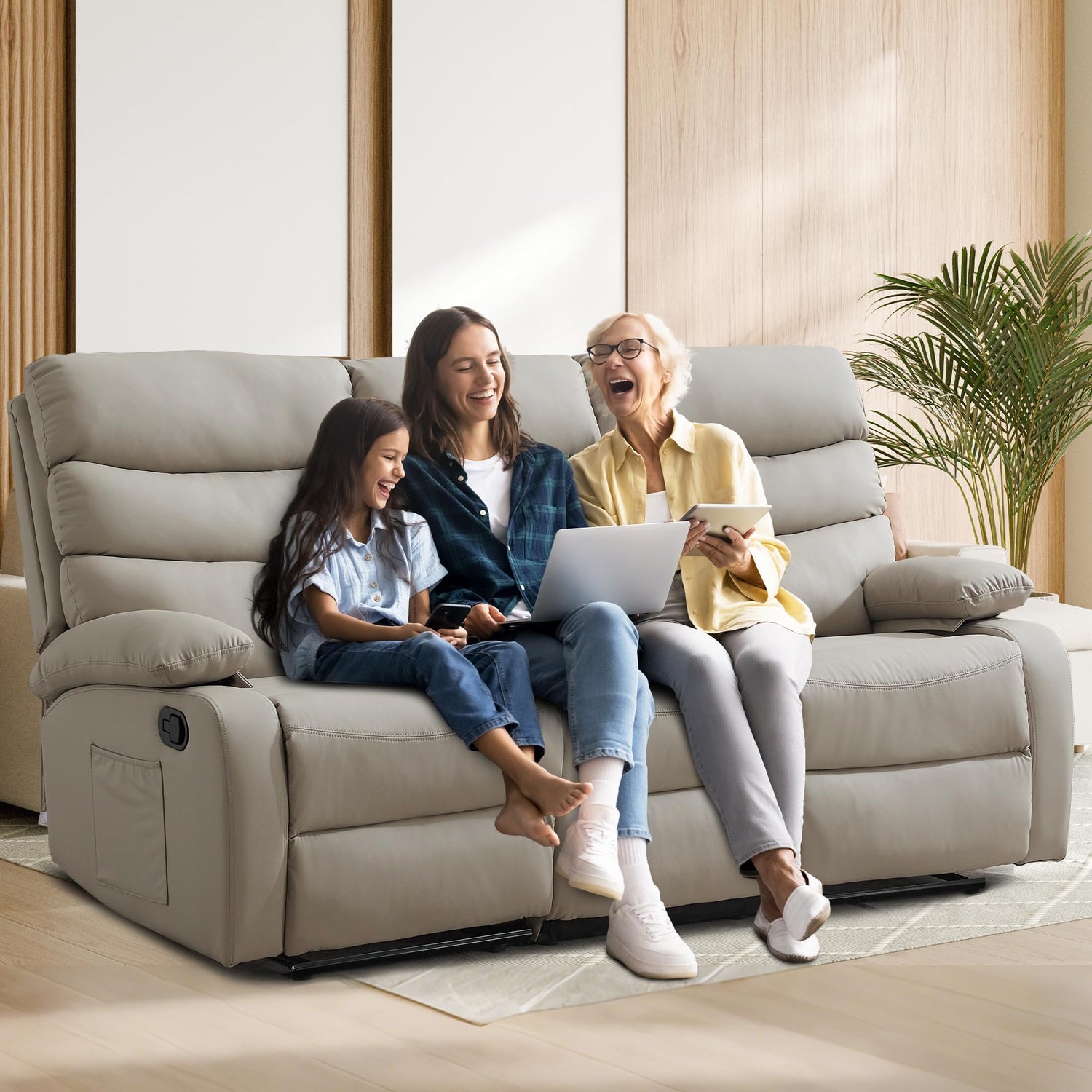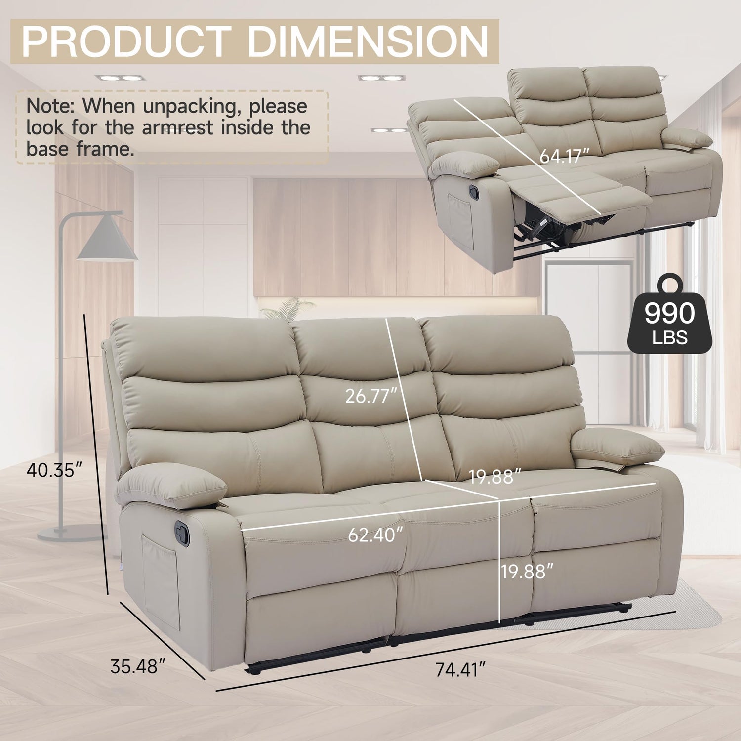GNMLP2020 Loveseat Recliner Sofa Set, Small Leather Couch 3-Seater Manual Seater Reclining, Triple Recliner Chair for Living Room, RV, Home Theater Seating(Beige, 3 Seater Sofa)