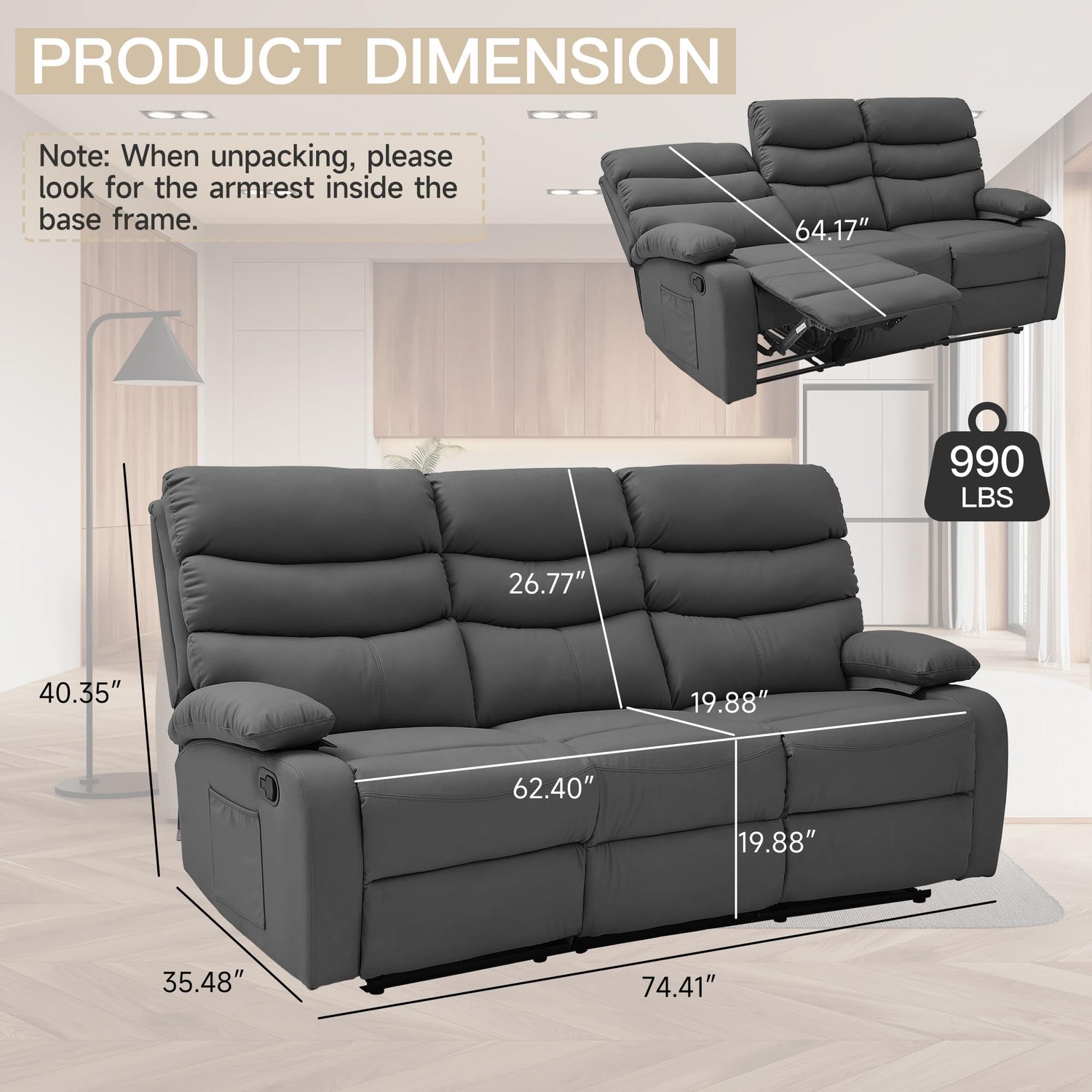 GNMLP2020 Loveseat Recliner Sofa Set, Small Leather Couch 3-Seater Manual Seater Reclining, Triple Recliner Chair for Living Room, RV, Home Theater Seating(Grey, 3 Seater Sofa)