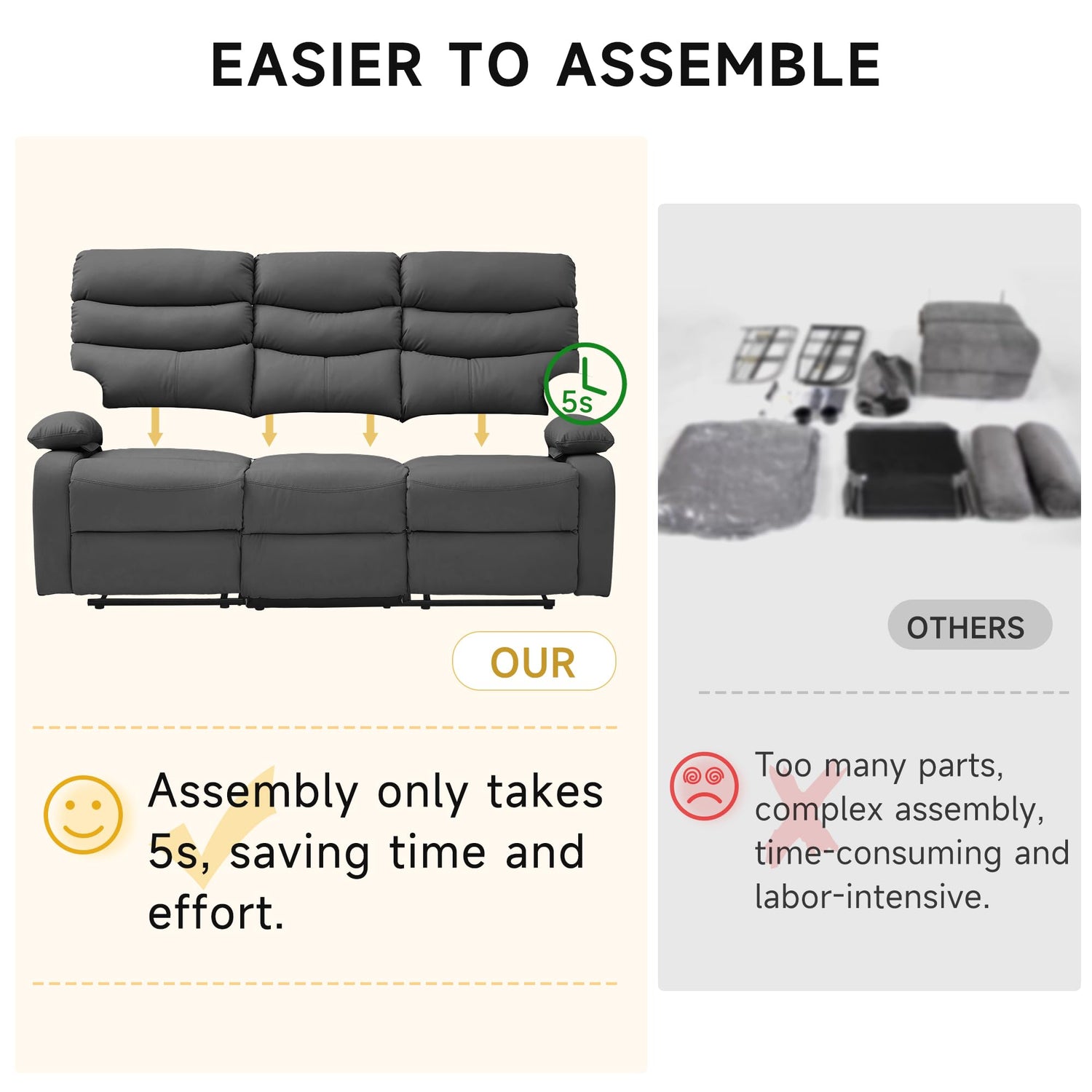 - EASY ASSEMBLY WALL HUGGER LOVESEAT RECLINER SOFA: Triple leather reclining couch is very easy to assemble, just 2 steps: 1. Connect the 3 rv wall hugger loveseat recliner bases; 2. Fit the love seat recliner sofa armrests and triple recliner backrest into the base. If you encounter any problems during triple reclining loveseat assembly and use, please contact us, our professional team will provide you with the best solution