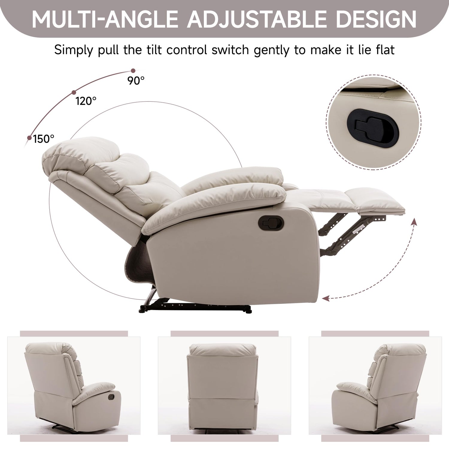- High Quality Recliners: The beige manual recliner chair for adults is made of New Technology Leather(Note: Not Tech Leather Fabric), which has the texture of leather, but softer and more breathable than other leather recliners. Waterproof and easy to clean, and the living room chairs‘s cushion is filled with high-resilience sponge, giving you a softer and more comfortable experience. This manual recliners for small spaces is the perfect Christmas gift for our family and friends!