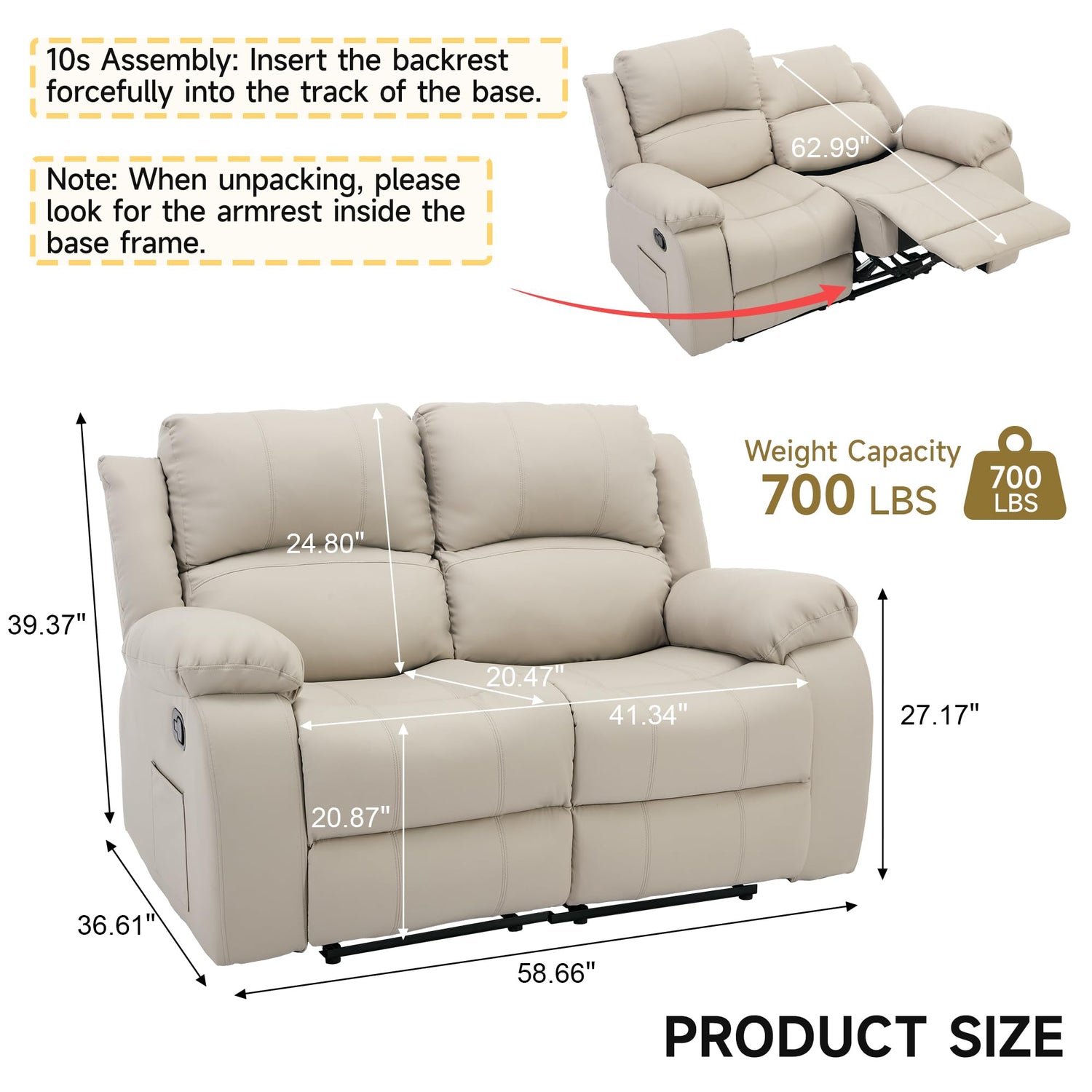 GNMLP2020 Reclining Loveseat Sofa Leather Recliner Couch 2 Seater Sofa for Living Room, Home Theater Seating(Loveseat,Beige)
