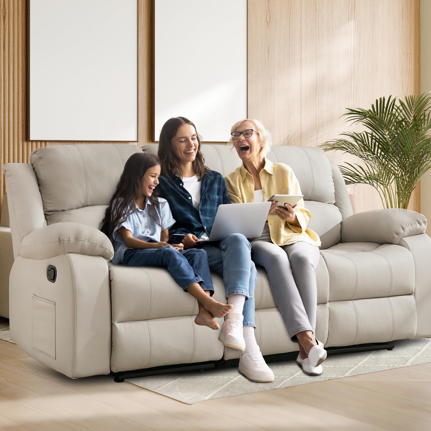 GNMLP2020 Reclining Loveseat Sofa Leather Recliner Sofa 3 Seater Couch for Living Room, Home Theater Seating(3 Seat,Beige)