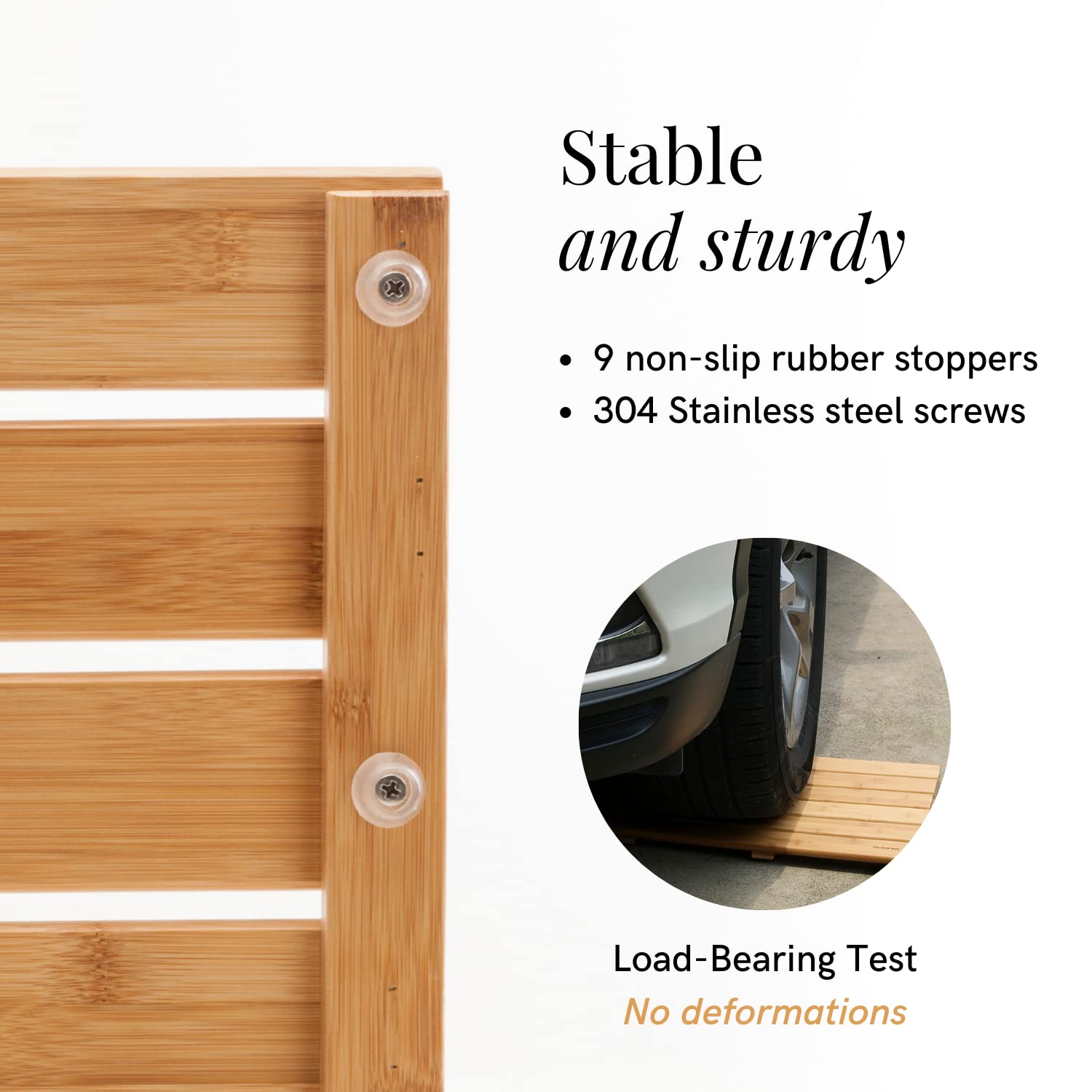 - 【Hard Bath Mat】The bamboo bathroom mat is sturdy and can easily withstand heavy weight. It's stronger and more durable than wood and oak