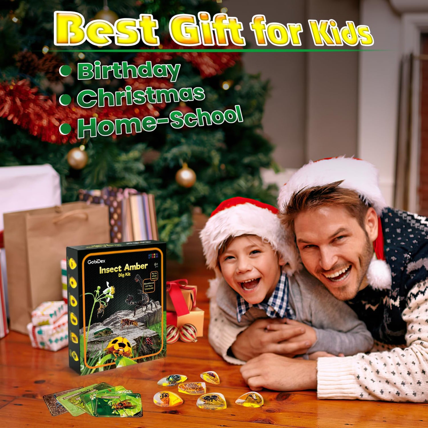 GobiDex Amber Dig Kit-Artificial Insect Resin, Excavate 6 Insects Specimens, STEM Geographic Educational Bugs Toys, Excavation Toys for Fun Bugs Party Favors, Science Kits for Kids Age 6-8 8-12