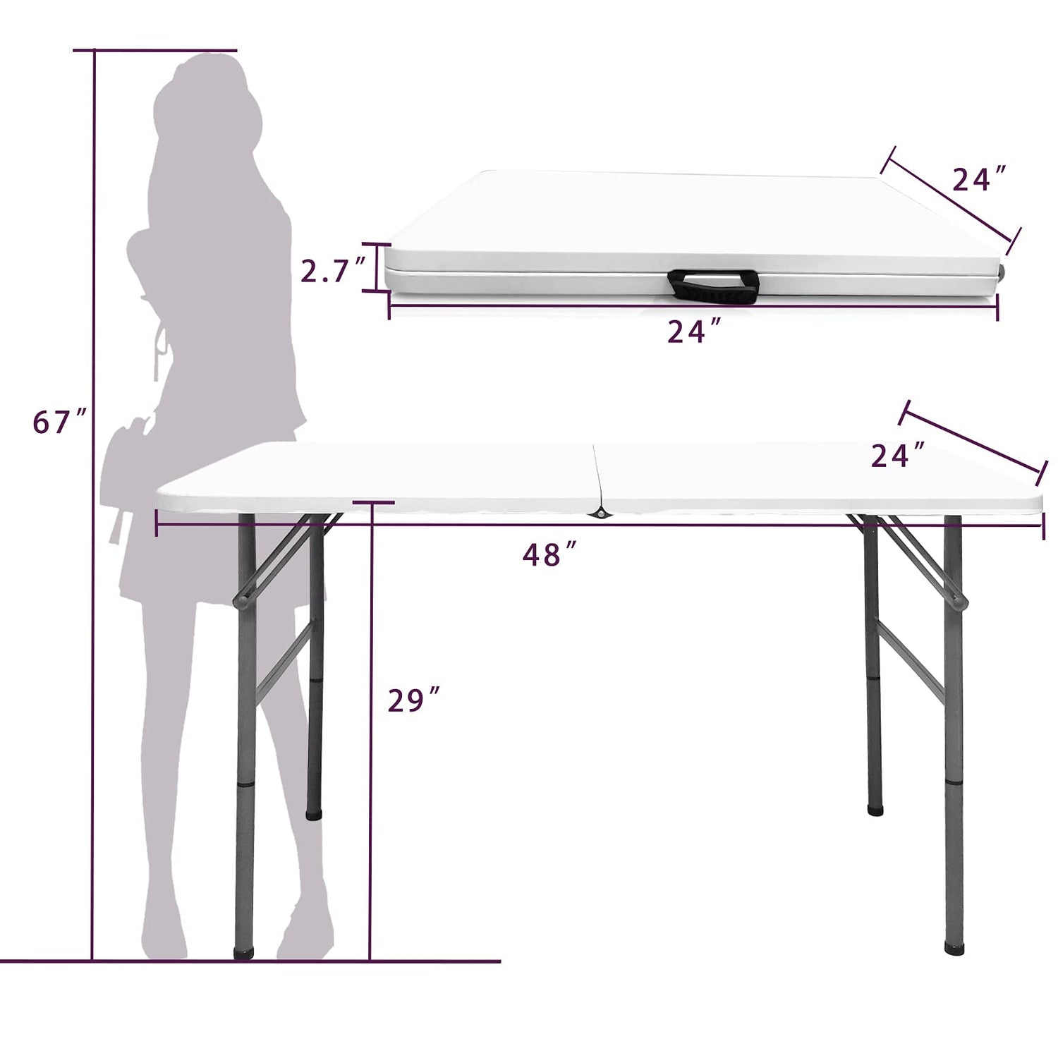 Details: Specification: - Convenient Carry Handle. - Open size:48" L x 24" W x 29" H; - Folded size:24" L x 24" W x 2.7" H; - Weight Capacity: 330 lbs. -Simple appearance, fits indoor and outdoor, perfect for garden, beach, parties, picnics or camping. Package Included Table x 1
