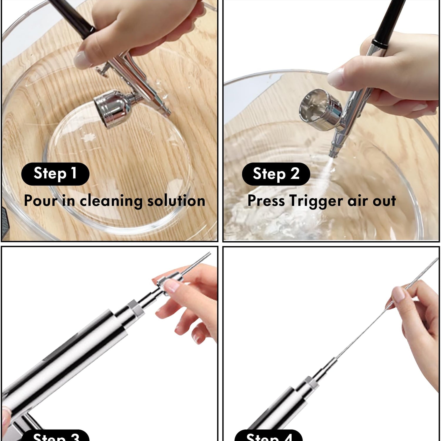 - Non-clogging spray gun: Professional airbrushes come with an adjustable tailstock, so you can detach the tail of the airbrush to fit it with the right needle for your painting needs, making your airbrushes smoother and more advanced