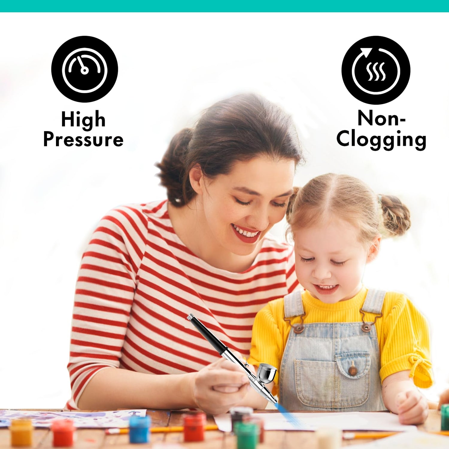 - High Pressure Spray Flow: airbrush kits featuring 40PSI air pressure and airflow reaching 8-10L,resulting in a 60% performance boost. Stable performance for various applications such as art painting,model coloring,cake decoration,nail art,makeup,beauty