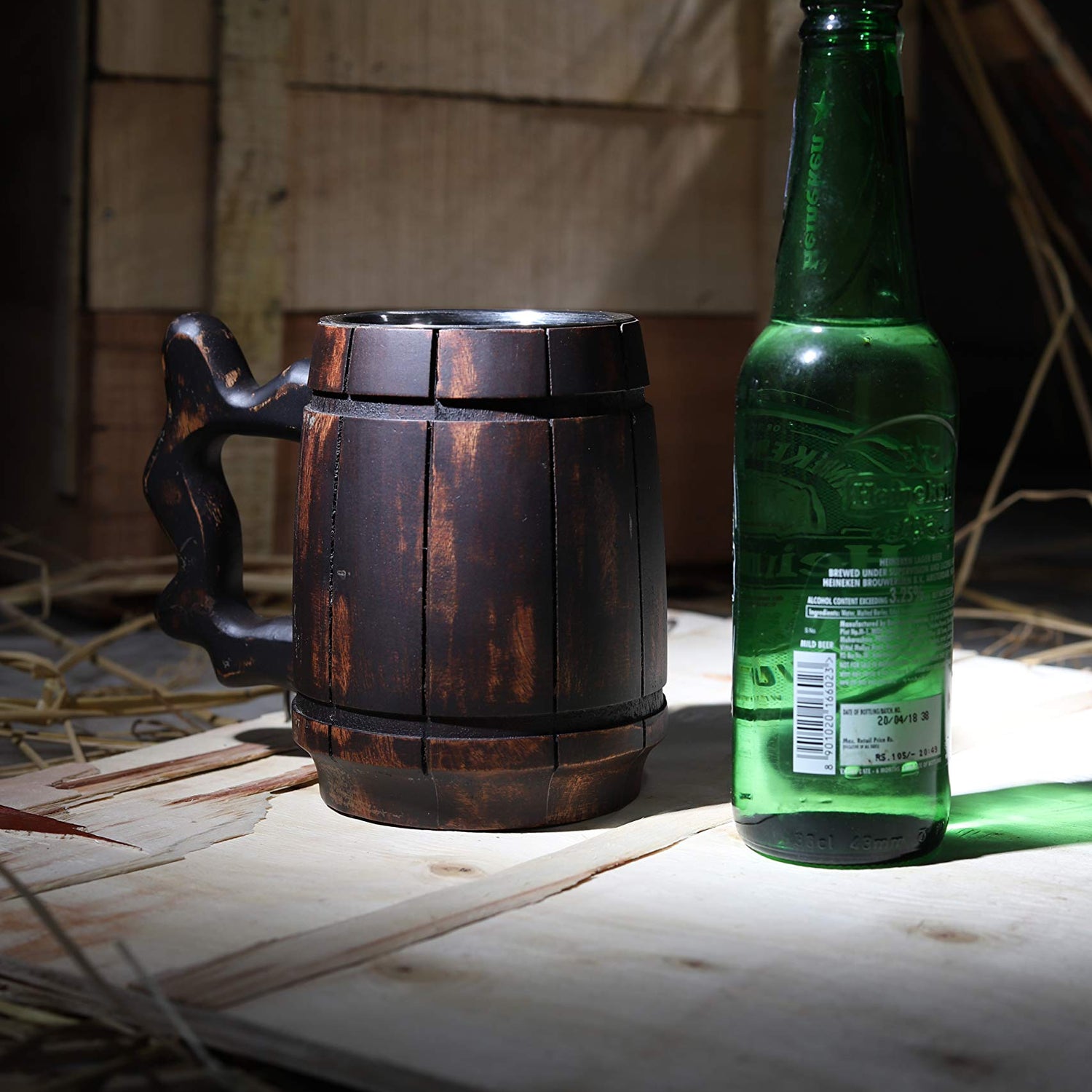 GoCraft Handmade Wooden Beer Mug with 18oz Stainless Steel Cup | Great Beer Gift Ideas Wooden Beer Tankard for Men | Vintage Bar accessories - Barrel Brown Classic Design