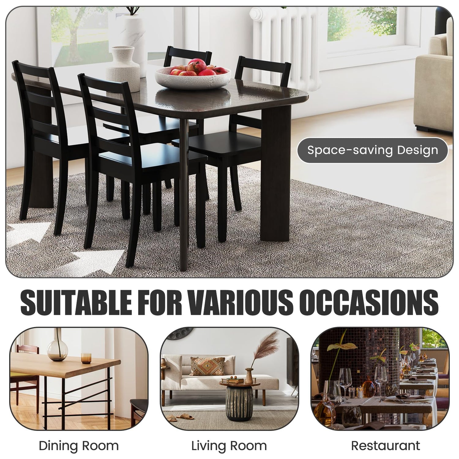 - Versatile & Space-saving Design: The dining chairs can fulfill multiple uses and are suitable for various occasions, such as dining room, living room, restaurant, cafe and so on. After a full meal and drink, the armless dining chairs can be pushed under the table to save floor space.