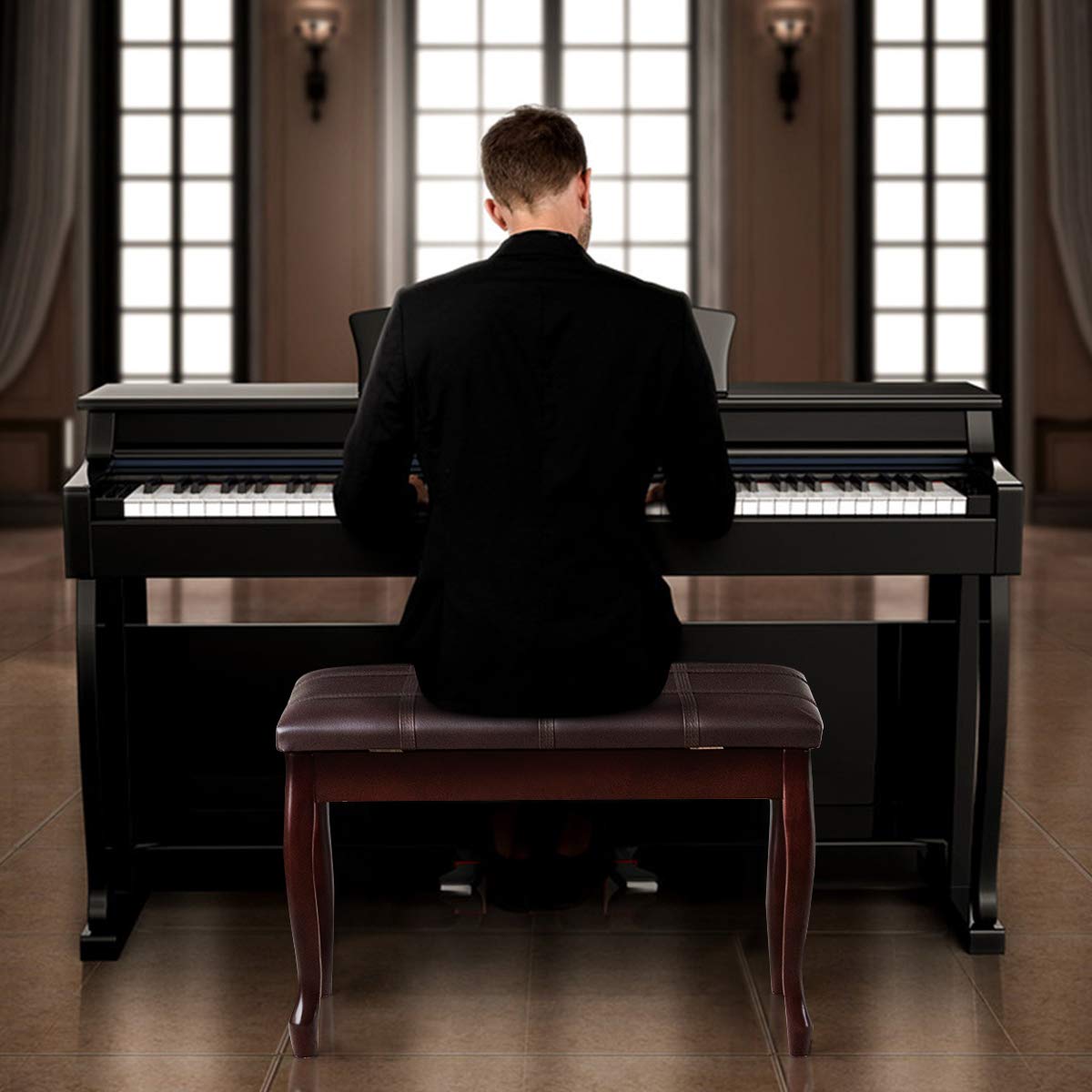 - Sturdy Construction: Our piano bench is made of high quality solid wood and PU leather. Solid wooden legs offer strong support, making it sturdy and durable enough to stand steadily. With a anti-skid foot pad under each leg to protect floor from being scratched.