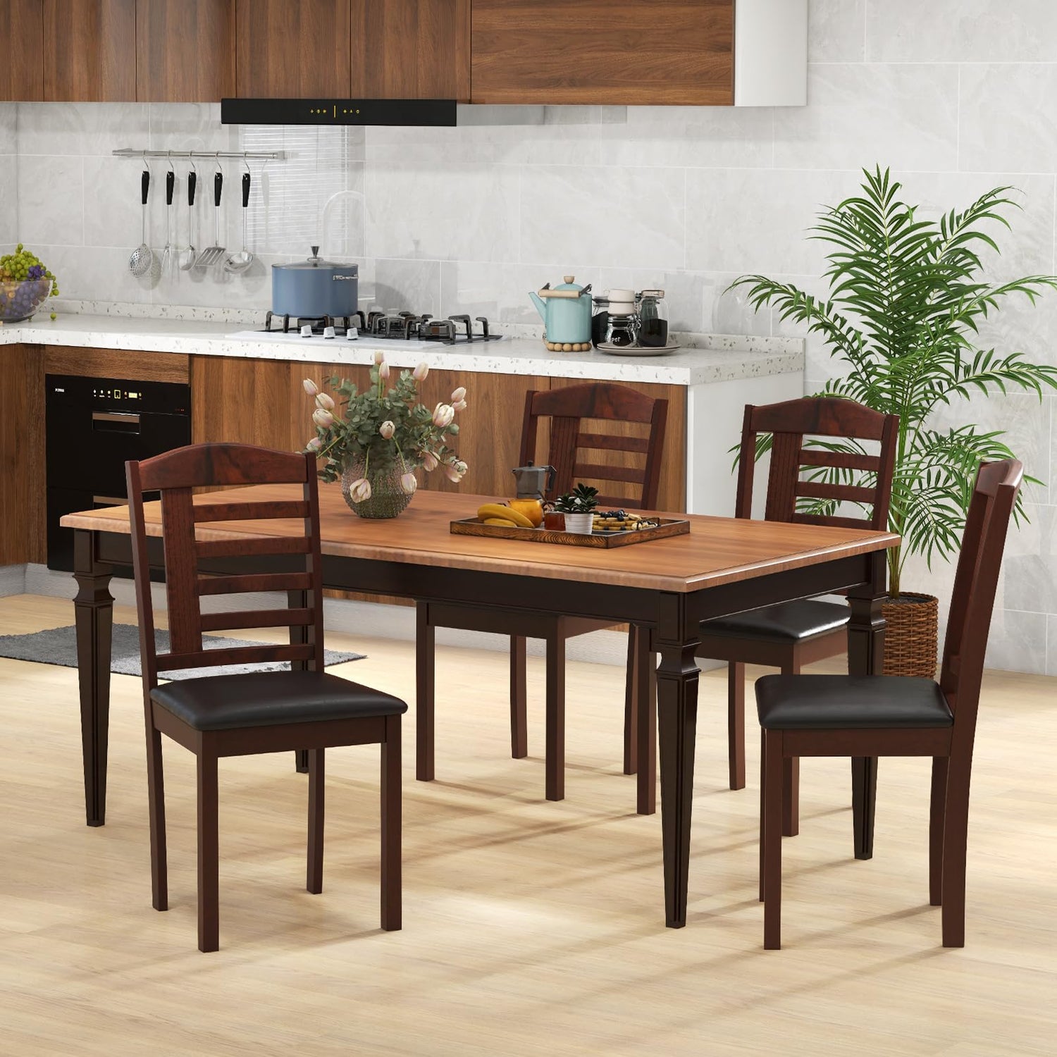 - Luxurious Seating Experience: The dining room chairs feature a padded seat covered with easy-to-clean and wear-resistant PU leather. Besides, the seat is filled with sponge, ensuring maximum comfort and allowing you to engage in conversations over dinner.