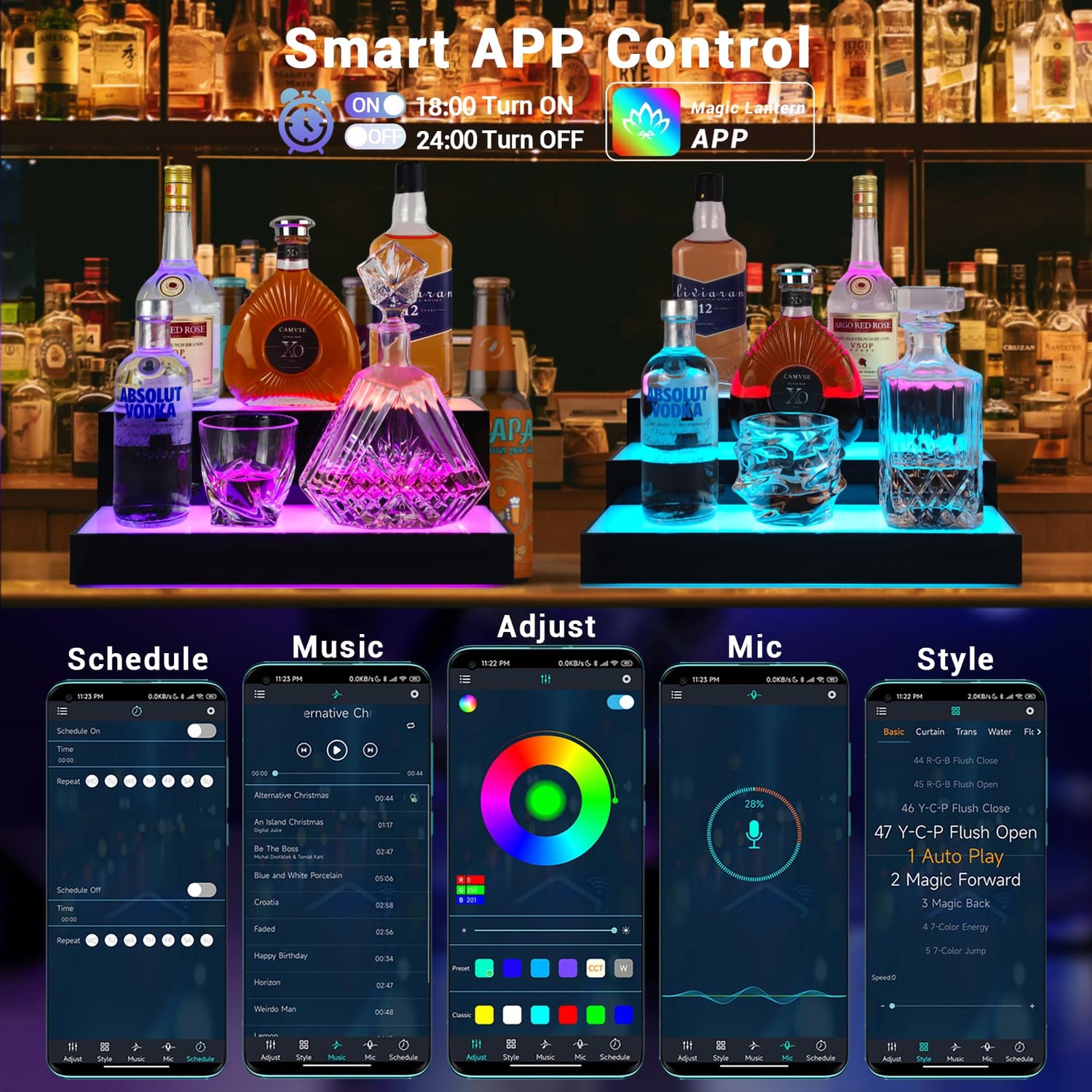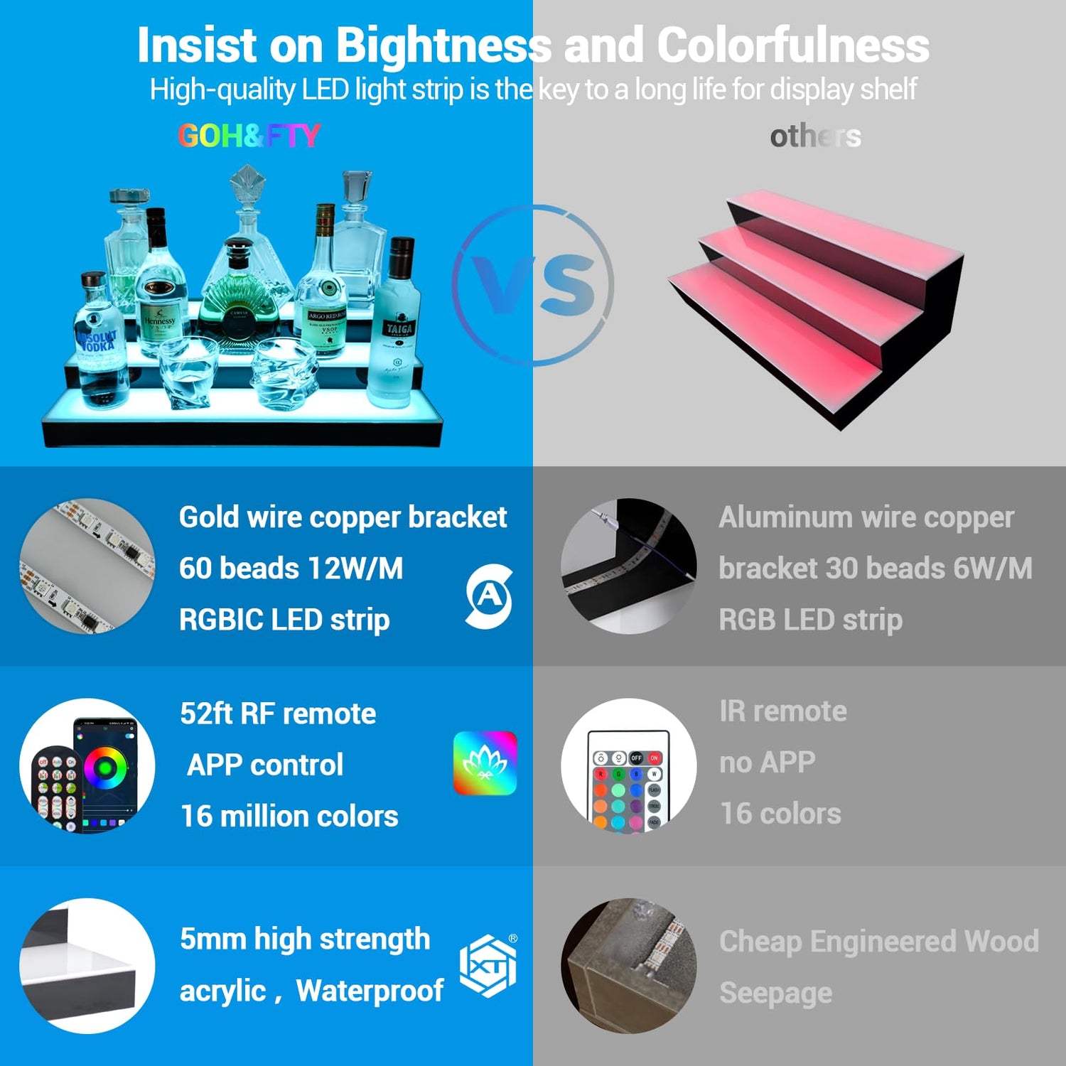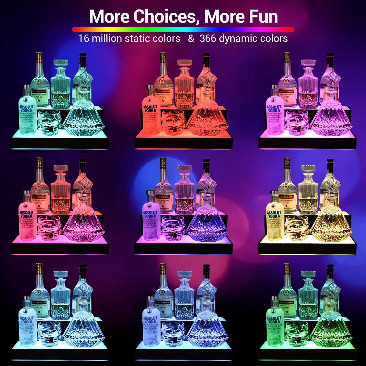 GOH&FTY LED Lighted Liquor Bottle Display Shelf,APP 16 inche 2Step LED Bar Shelves with Wireless Remote& Multicolor LED Light ,Bar Stand for Home Bar Accessories