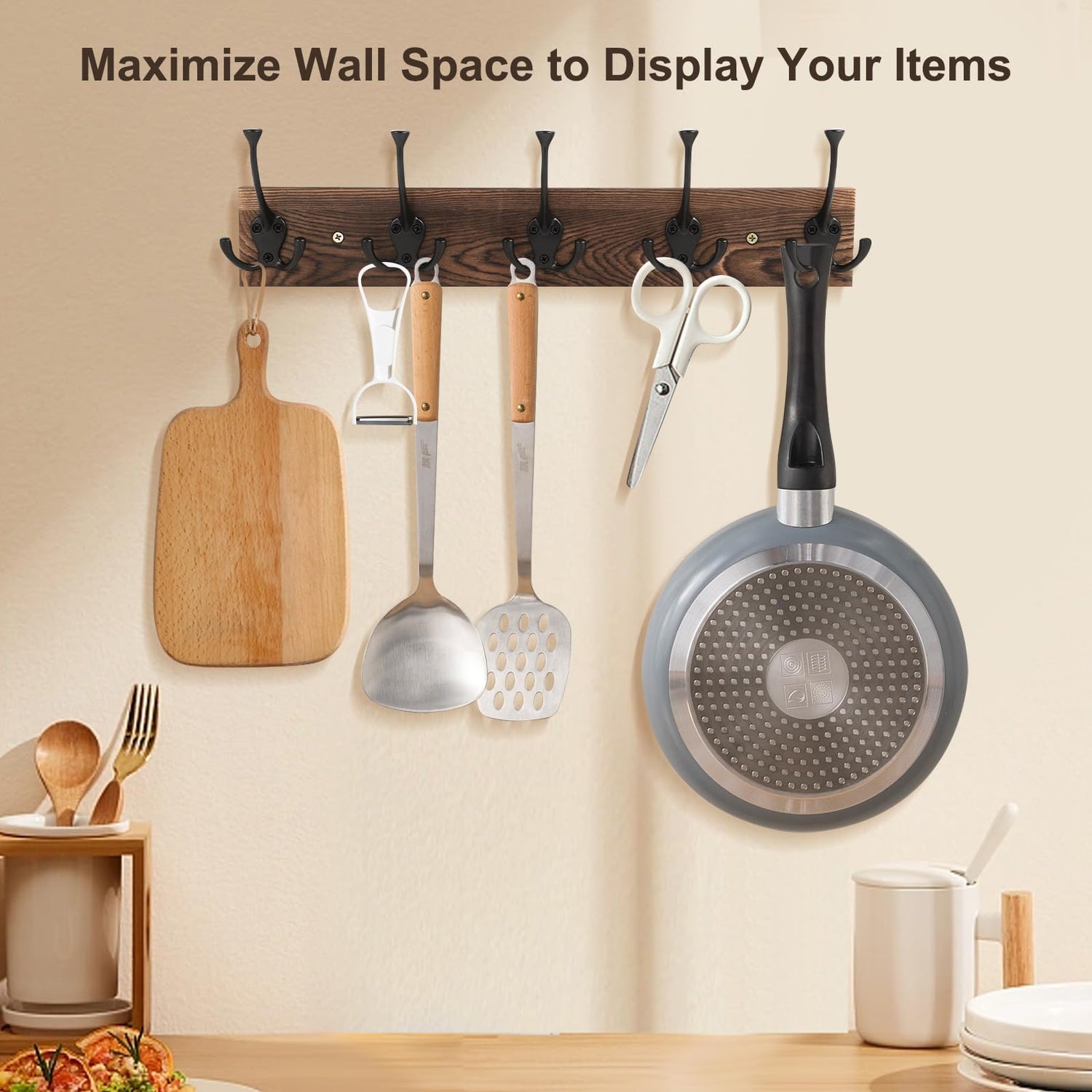 - Premium Coat Rack Wall Mount Design: Crafted from solid pine wood with antique finish, this wall-mounted organizer features 5 triple-prong zinc hooks (15lbs each). Ideal for heavy coats, scarves, and bags without wall damage.