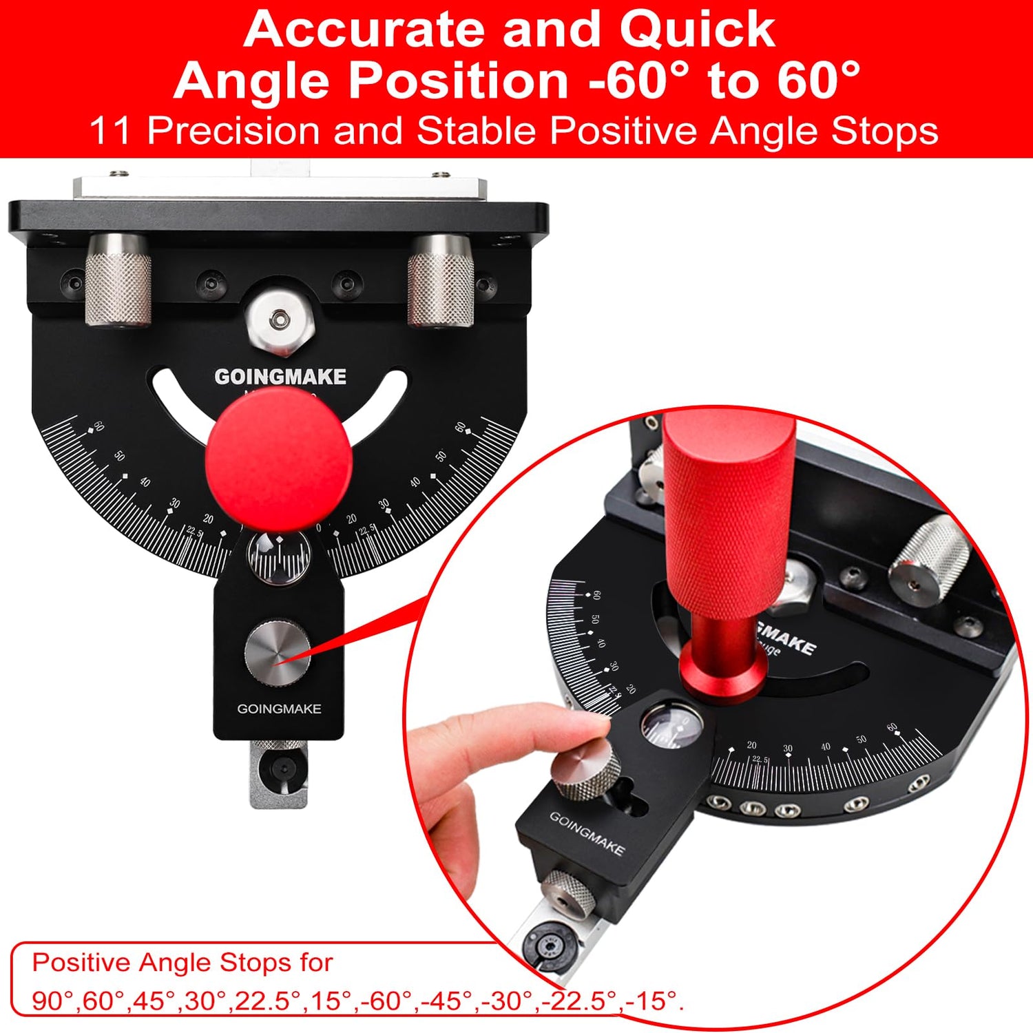 - 【Fast and Accurate Angle Setup】GOINGMAKE table saw miter gauge protractor provides 11 accurate positive angle stop for quick angle set up for 90°,60°,45°,30°,22.5°,15°,0°,-60°,-45°,-30°,-22.5°,-15°. Easy to adjust with our fast and stable angle stop lock make sure lock angles securely in place. You can also cutting angle from -60°to 60° with the clear laser scales.