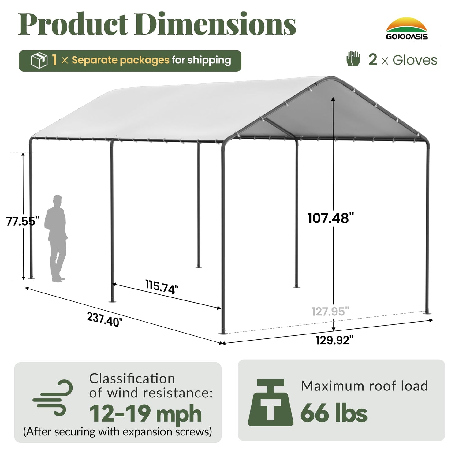 GOJOOASIS 10x20 Carport Heavy Duty Portable Garage Shelter Metal Car Canopy Tent with UV-Resistant & Weatherproof Top Cover for RV & Vehicles (White, 10x20 Without sidewalls)
