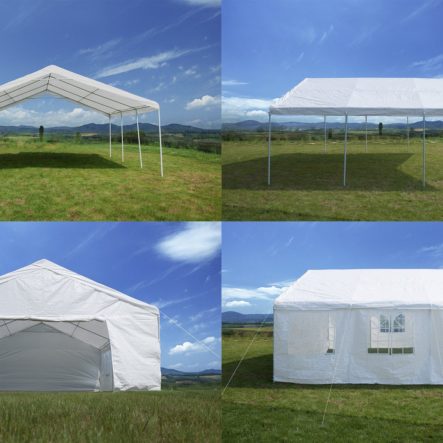 - 【Suitable for Multiple Uses】This event tent can be used for parties, wedding receptions, family reunions, portable garage, or any other outdoor event. It can provide you with a shelter from rain and sun, suitable for a variety of outdoor activities. BUT if 7 grade or above strong wind occurs, it is strongly requetsed not to use the products and need to put away the product.