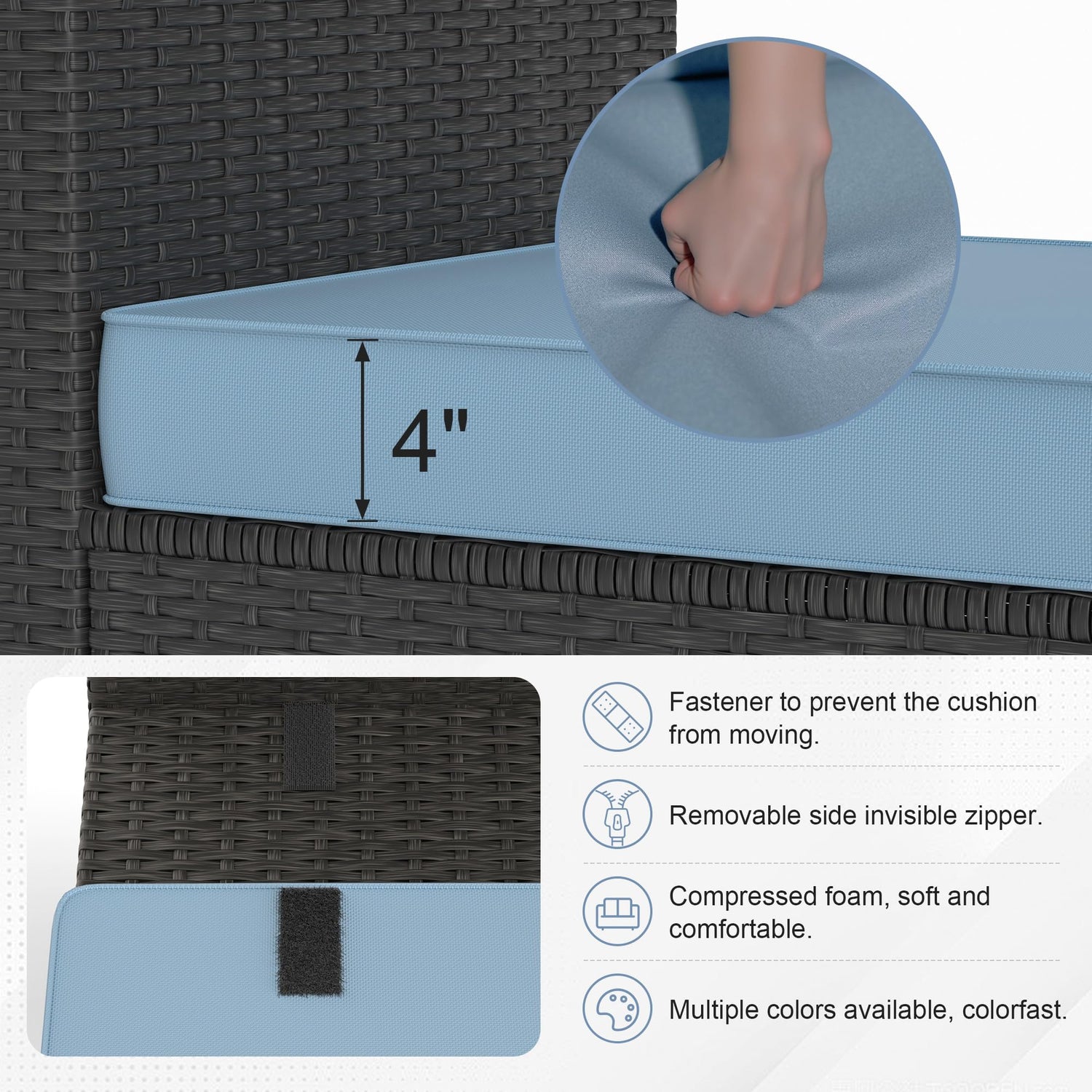 - 【Premium Comfort with Thick, Removable Cushions】Sink into luxurious, zippered cushions filled with high-density cotton for superior comfort. The waterproof, UV-resistant fabric ensures long-lasting softness while resisting fading, stains, and mildew—perfect for all-weather use. The included throw pillows add a chic, cozy touch to your outdoor lounge area.
