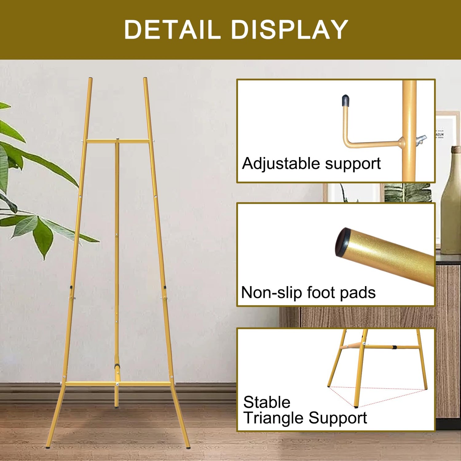 - MINIMALlSM: This gold easel stand for sign is designed in minimalist style with asleek and sophisticated look, suitable for all styles of homes and studios.Paintingeasel measures 20" x 18" x 54"
