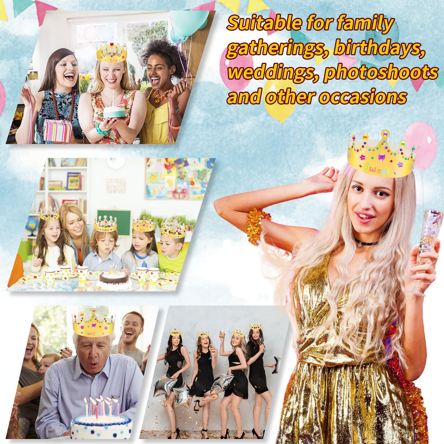 - Sparkling & Sturdy Party Crowns: Made from sturdy, high-quality gold cardstock, these crowns feature a beautiful metallic sheen that gives them a royal, festive look. You can even gently remove and reposition the stick-on gems without disturbing the shiny gold surface