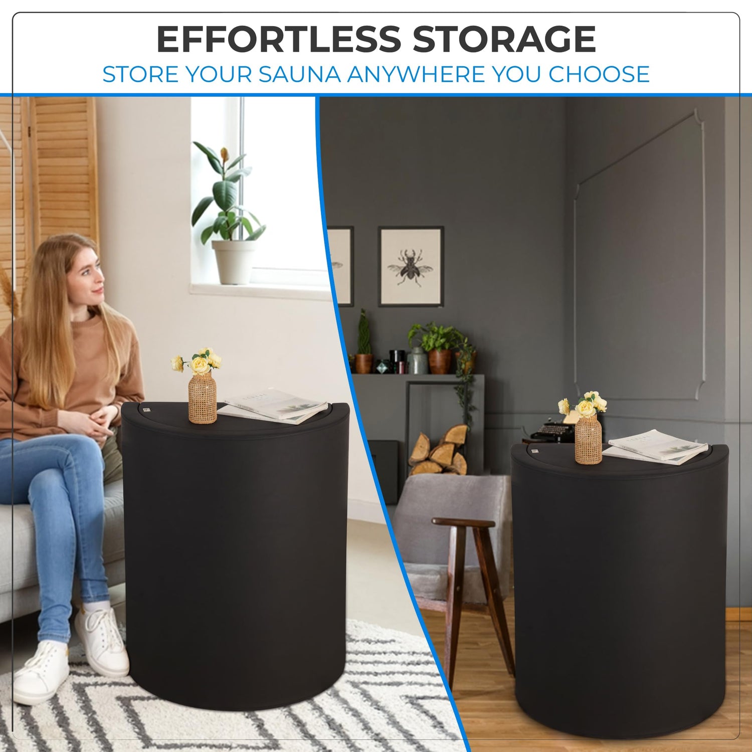 - Personal Indoor Spa Experience – A space-saving design that offers the effectiveness of a commercial infrared sauna heater in the comfort of your own home this sauna is small enough to set up in your bedroom or living room and then pack away neatly.