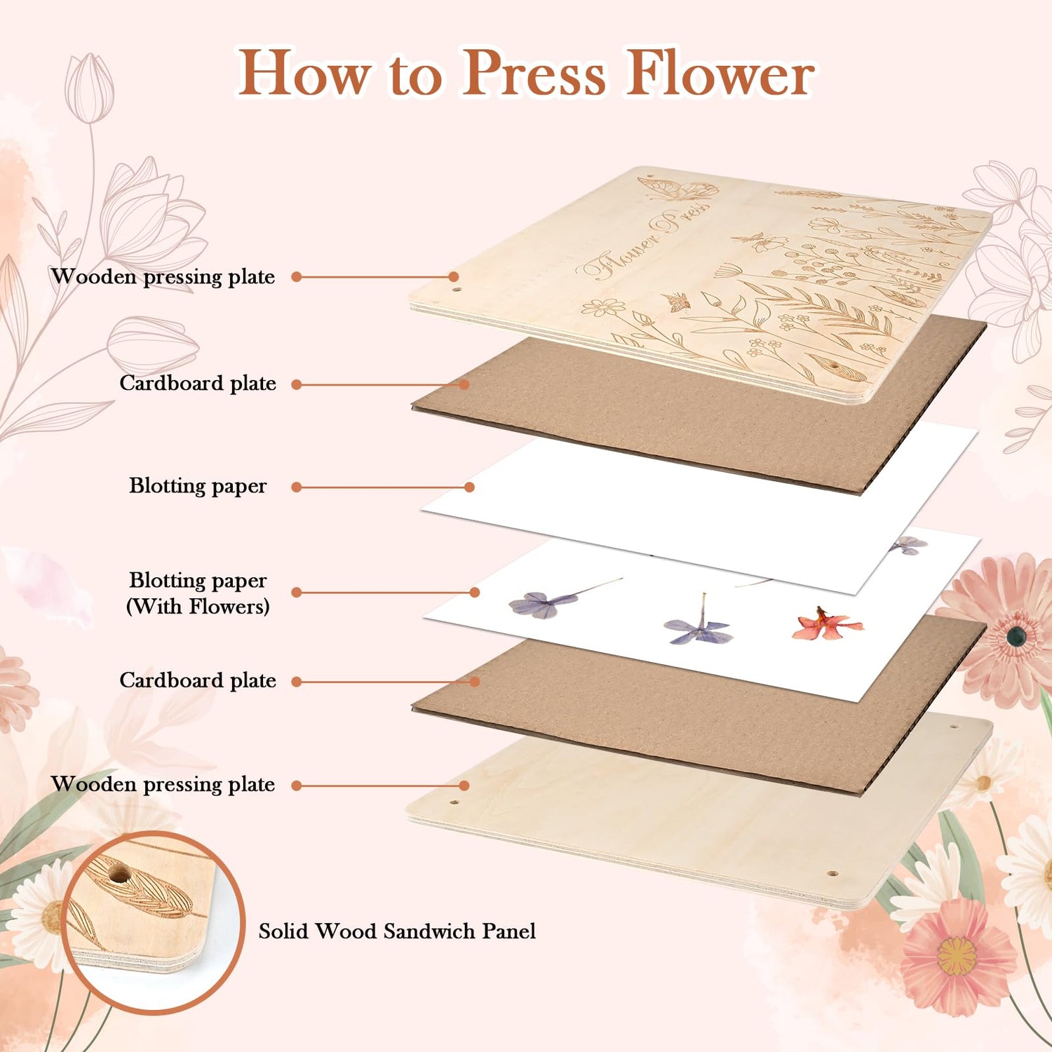 - 1. 10-Layer XL Press for Oversized Blooms: Craft effortlessly with our spacious 10.8” x 10.8” flower press! Designed for drying large flowers, leaves, or multiple smaller blooms at once, its 10-layer capacity lets you create abundant dried materials for framed art, candles, bookmarks, and more—perfect for ambitious DIY projects.